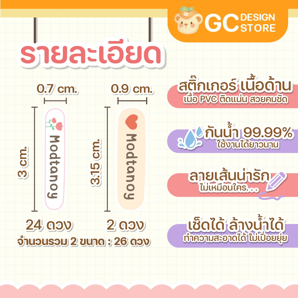 สติ๊กเกอร์ชื่อสำหรับติดดินสอสี ปากกา ติดแน่น กันน้ำ ชื่อเด็ก กล่องดินสอ เครื่องเขียน L007