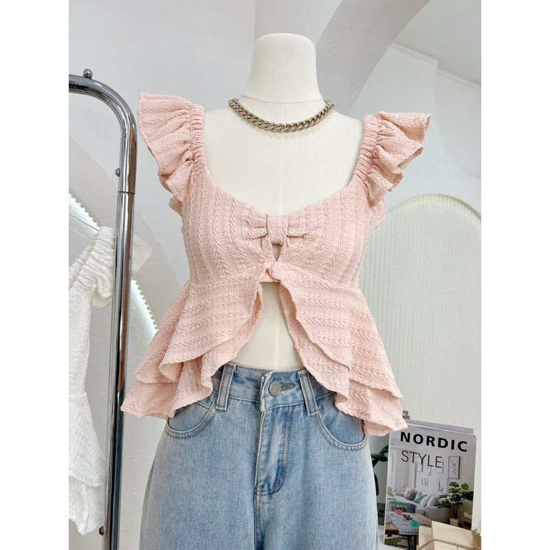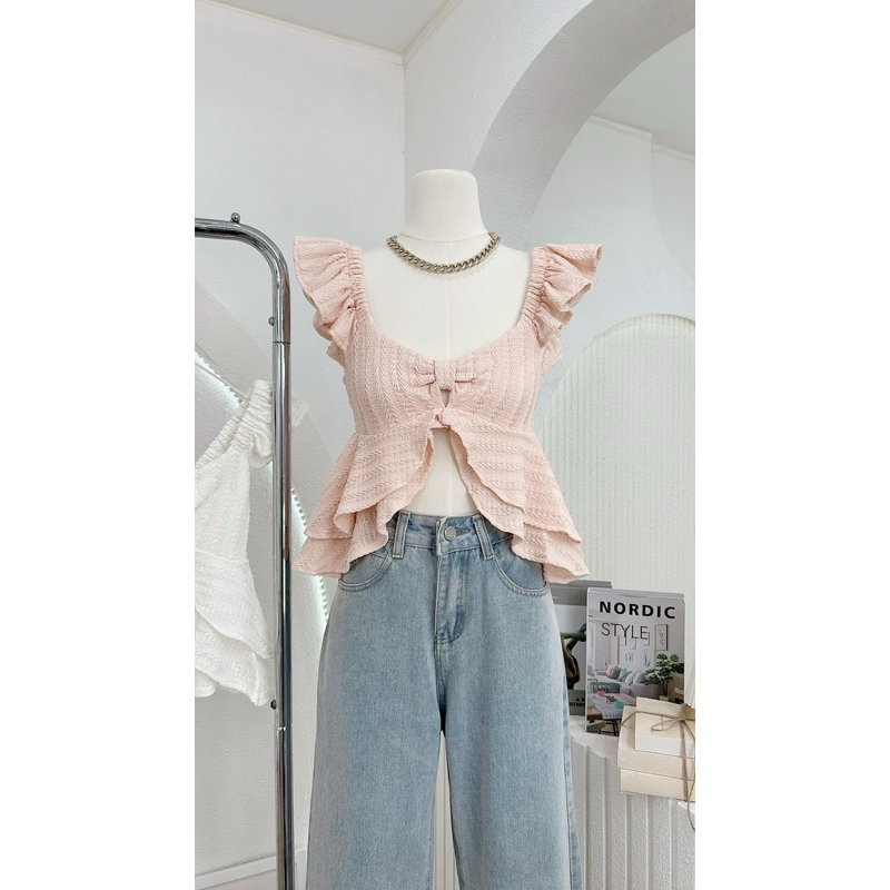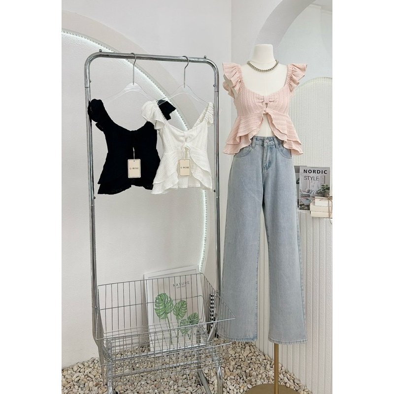 NN457 เสื้อแขนกุดระบาย ทรงโบว์ ผ่าหน้า G-Rose🌹