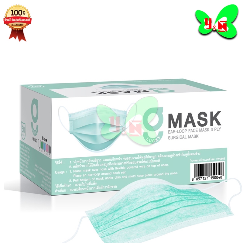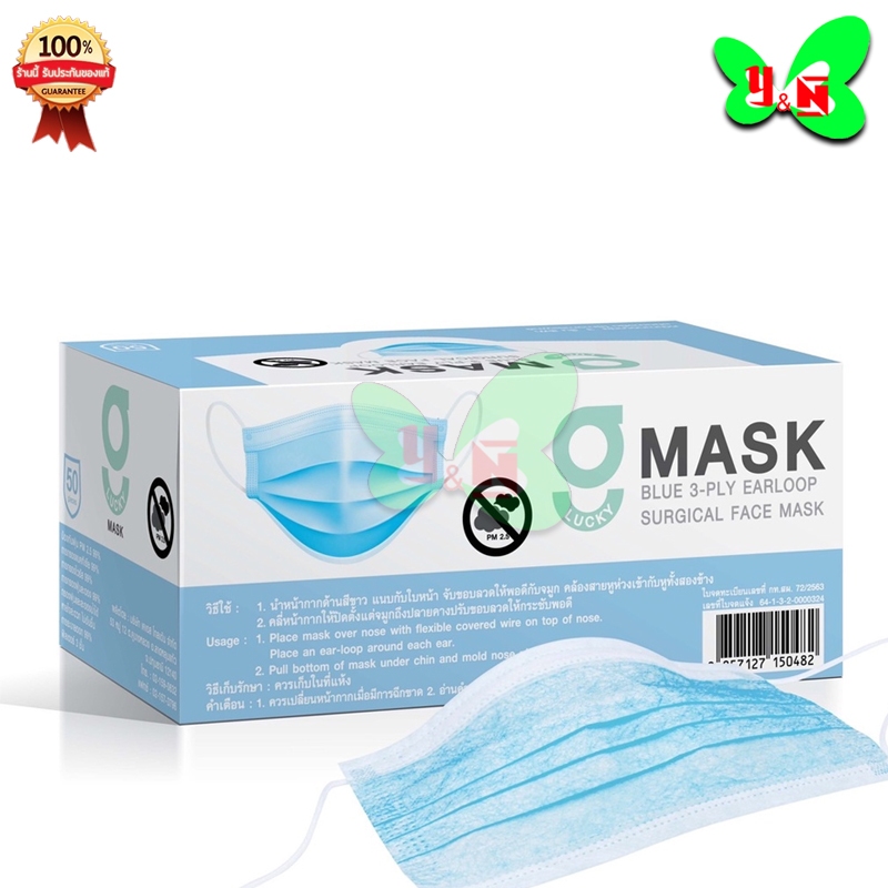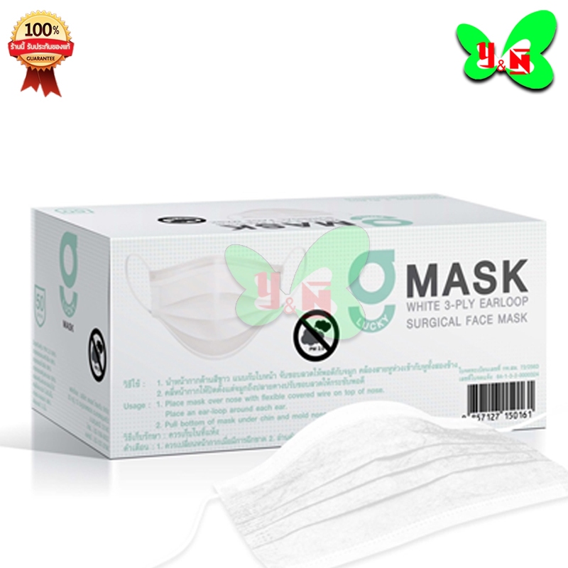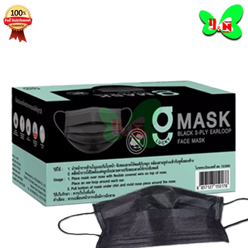 G Mask " ขายยกลัง 20 กล่อง " สีเขียว ขาว ดำ ฟ้า G Lucky Mask หน้ากากอนามัย 50 ชิ้น/กล่อง