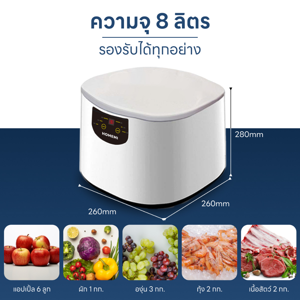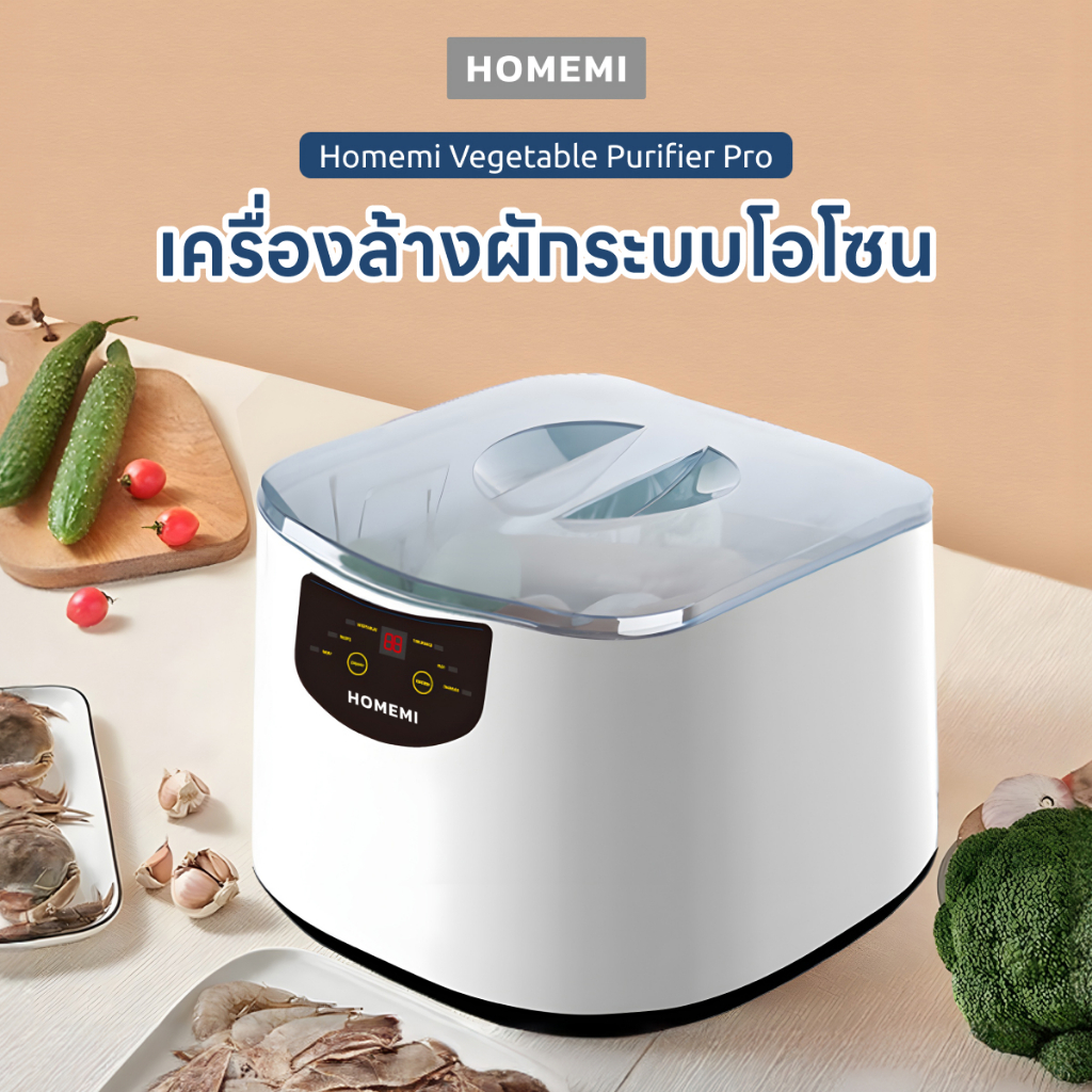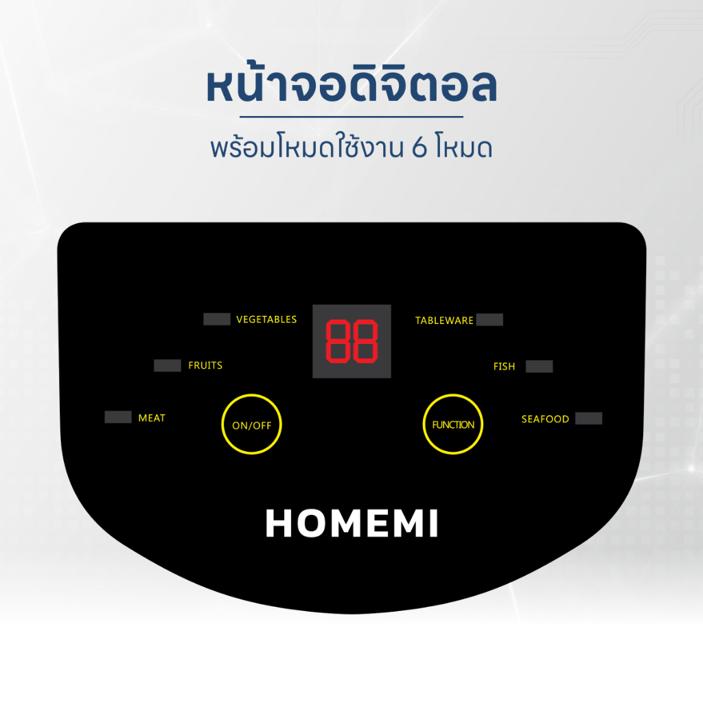 Homemi เครื่องล้างผักระบบโอโซน Vegetable Purifier Pro หน้าจอดิจิตอล โหมด ล้างผัก ล้างเนื้อ (HM0060-P-WH)