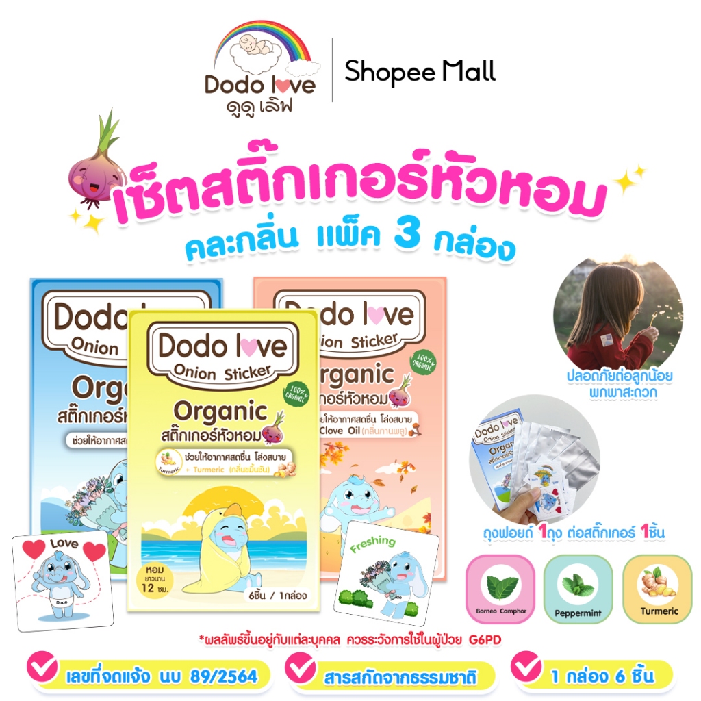 แพ็ค 3 กล่อง DODOLOVE สติ๊กเกอร์หัวหอม แผ่นแปะหัวหอม ออร์แกนิค