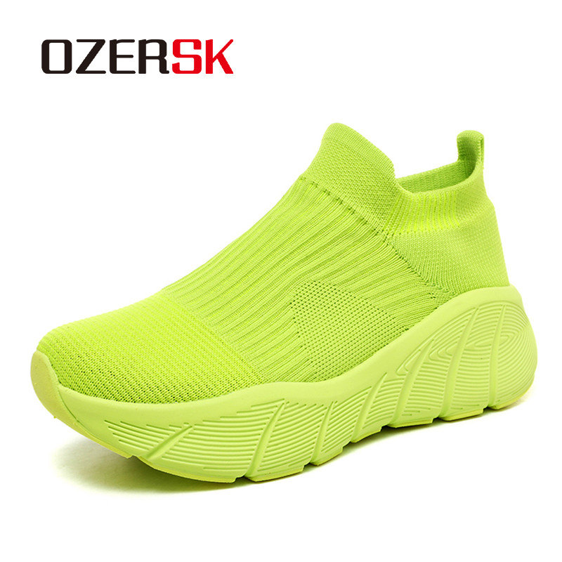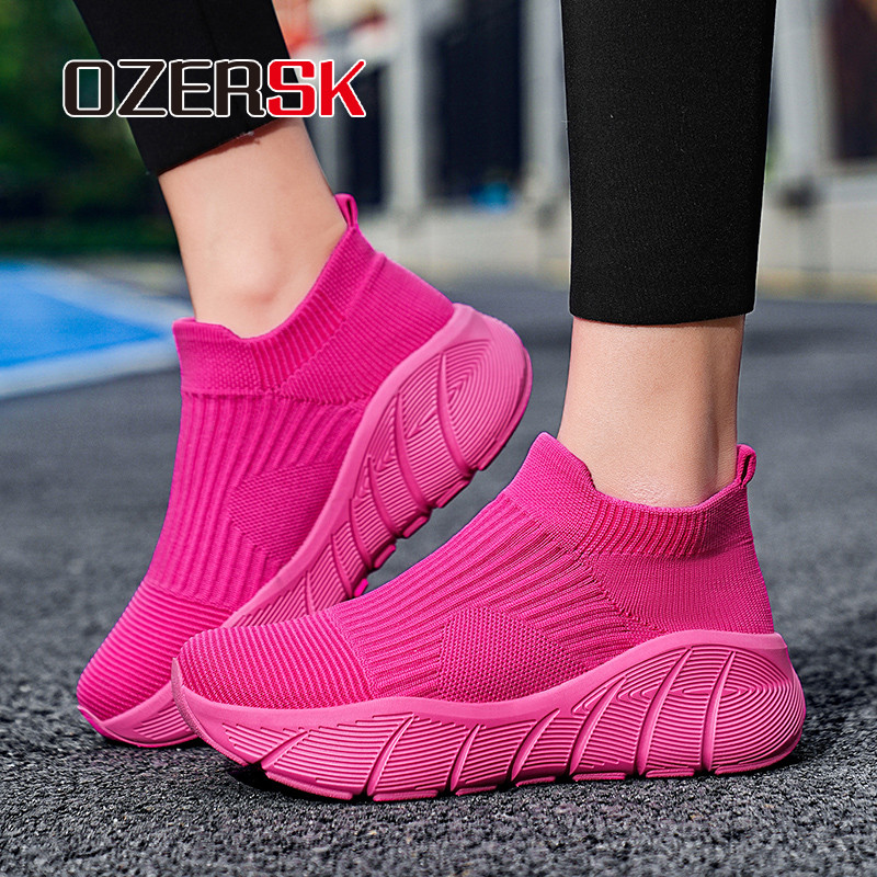 Ozersk รองเท้าบินทอสบาย Slip-On ความสูงน้ําหนักเบาพิเศษเพิ่ม 6 ซม.กันกระแทกไม่ลื่นรองเท้าผ้าใบคู่ขนาด 36-44
