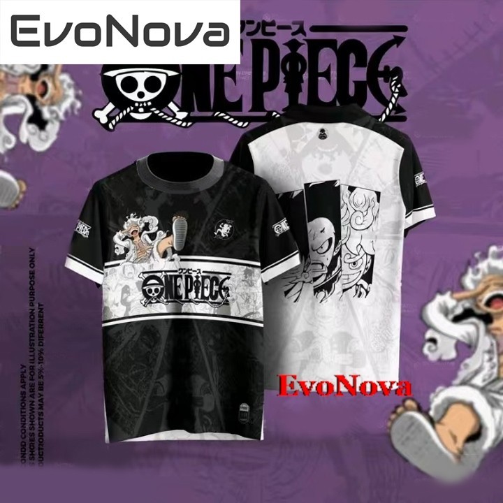 ชุดเสื้อเจอร์ซีย์อนิเมะ Evonova ONE PIECE 2024 รุ่นสีดำและขาว เสื้อแขนสั้นผู้ชาย คอปกย้อนยุค เสื้อเจอร์ซีย์ไมโครไฟเบอร์แบบซับลิเมชั่นเต็มรูปแบบ เสื้อผ้าสตรีทแวร์ยูนิเซ็กซ์