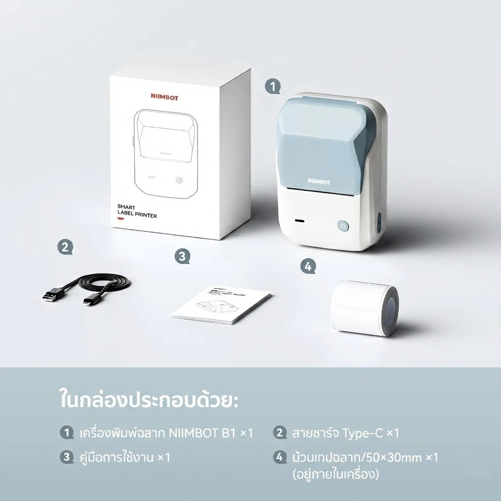 [ส่งในไทย] NIIMBOT B1 เครื่องพิมพ์ฉลากแบบพกพา เครื่องพิมพ์ไร้หมึก เครื่องพิมพ์ฉลากความร้อน