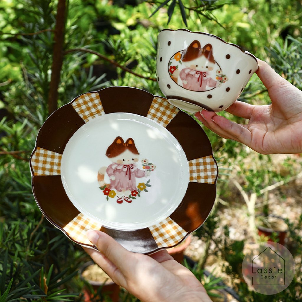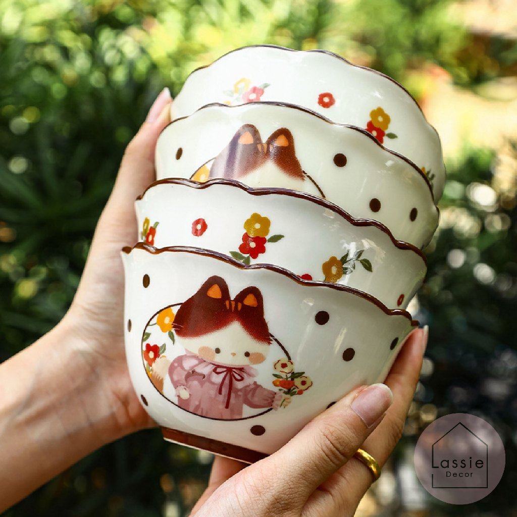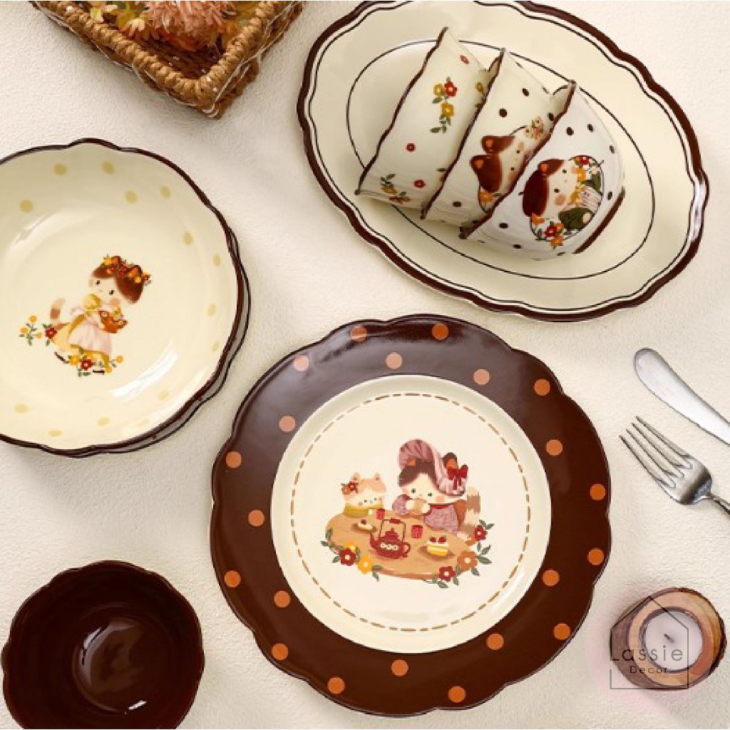 NEW🌸 Kitty Blossom Vintage จานชามถ้วยแก้วเซรามิก ลายน้องแมววินเทจสุดน่ารัก ใช้งานง่าย🐱 | Lassiedecor