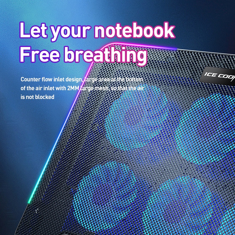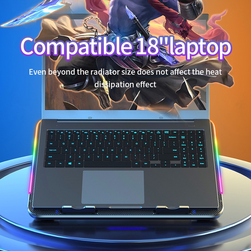 Laptop Cooling Pad พร้อมที่วางโทรศัพท์มือถือ พัดลมโน๊ตบุ๊ค Macbook Cooler 9"-18" ขาตั้งแท็บเล็ต ปรับระดับความสูงได้