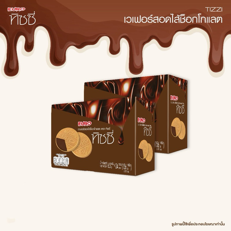 🫓ทิซซี่🍩 เวเฟอร์สอดไส้ช็อกโกแลต 6.5 g 1 กล่อง 24 ซอง ยูโร่ euro ขนมช็อกโกแลต ขนม