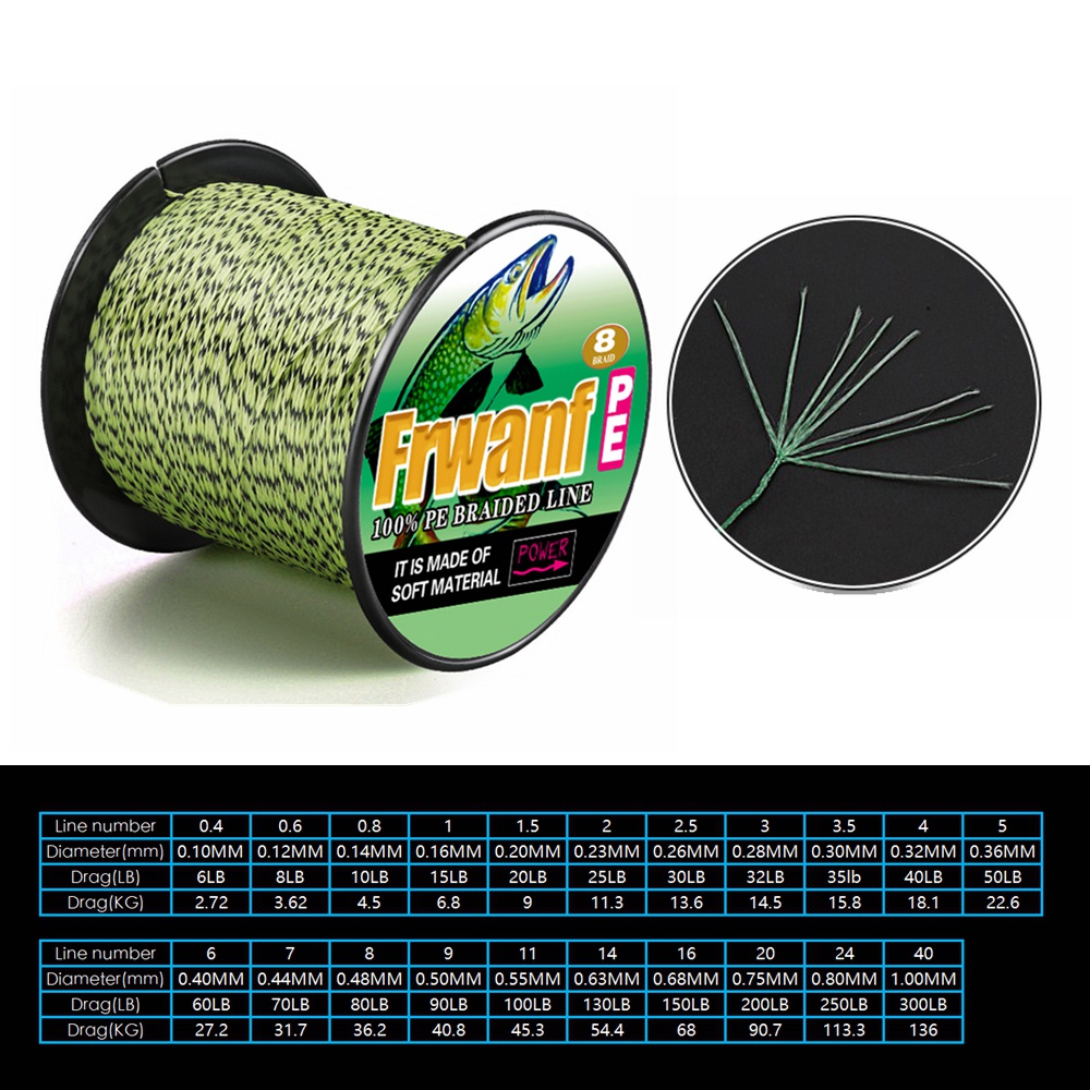 Frwanf 100M 8 Strands 6-300LB สีดํา + สีเหลือง Spot Line สายถัก Braid X8 สาย PE สายตกปลา