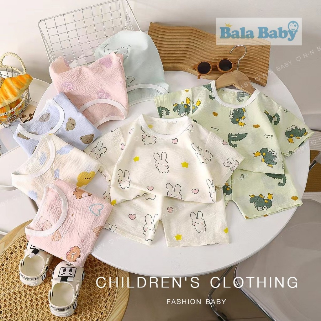 ชุดนอนแขนสั้น ขาสั้น ชุดนอนเด็ก เซท 2 ชิ้น ผ้าบางๆใส่สบาย Size 73-120 cm DXT51