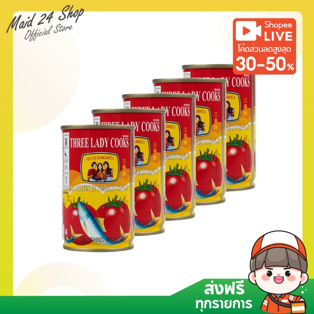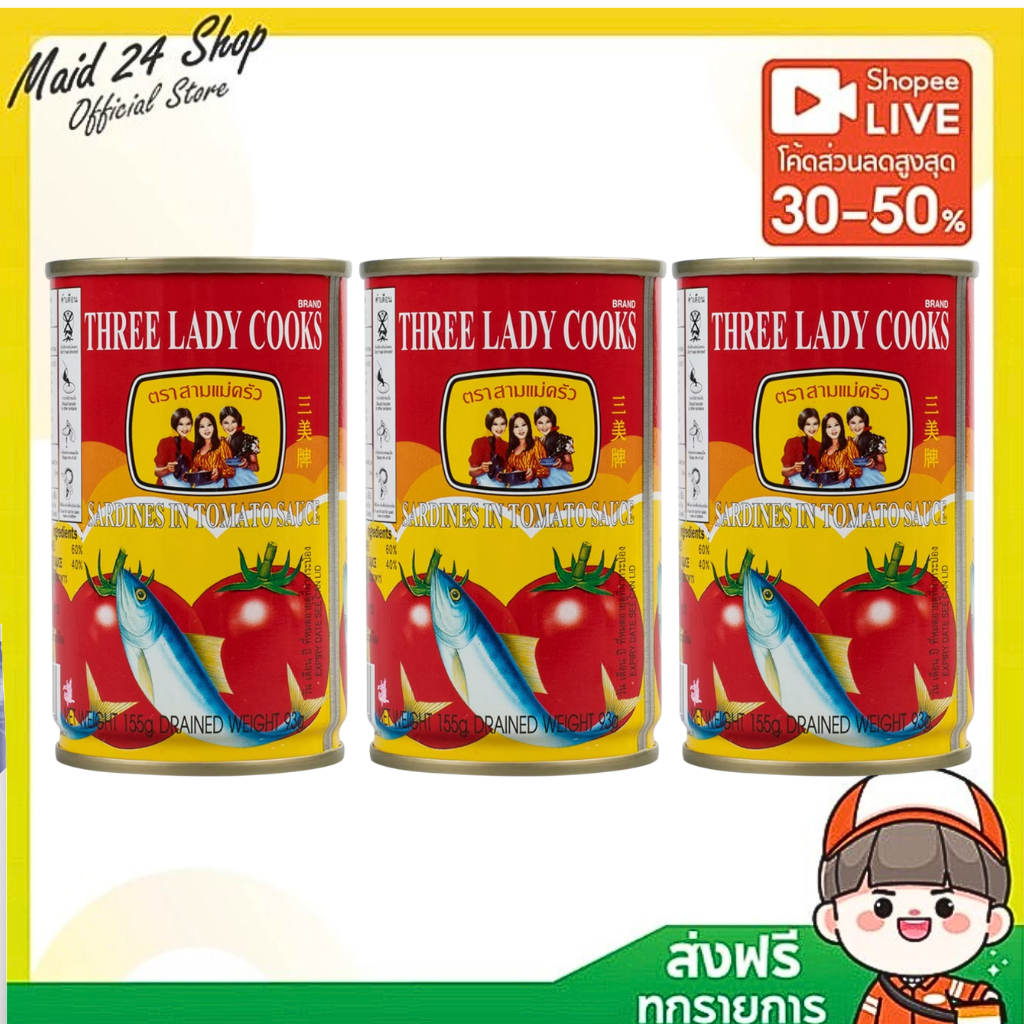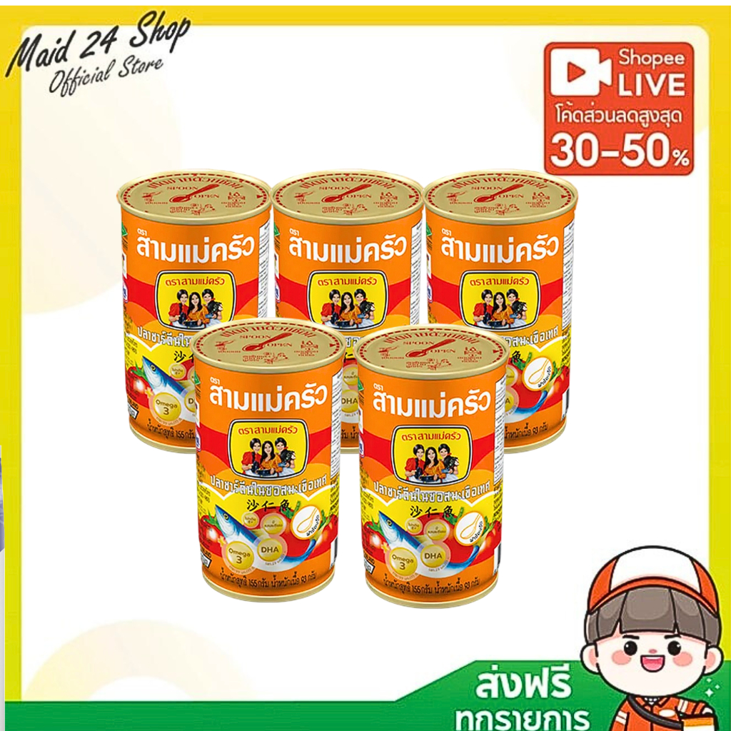 [พร้อมส่ง-ส่งไว] ปลากระป๋อง ตราสามแม่ครัว (ปลาซาดีนฝาดึง-ฝางัด) ขนาด 155 กรัม 3 กระป๋อง / 5 กระป๋อง / 10 กระป๋อง