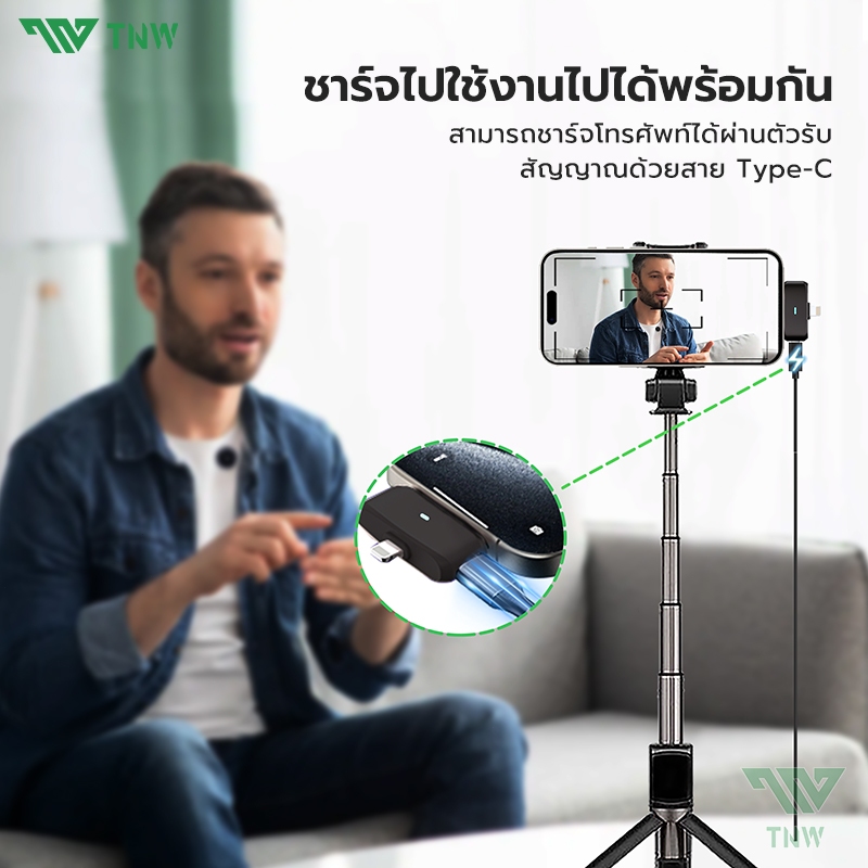 TNW A37 2.4Ghz ไมโครโฟนไร้สาย 2-In-1 Wireless Microphone พร้อมหน้าจอแบบดิจิตอล ไมค์ไร้สาย Lavalier ใช้ได้กับ IOS/Type-C