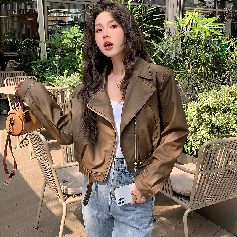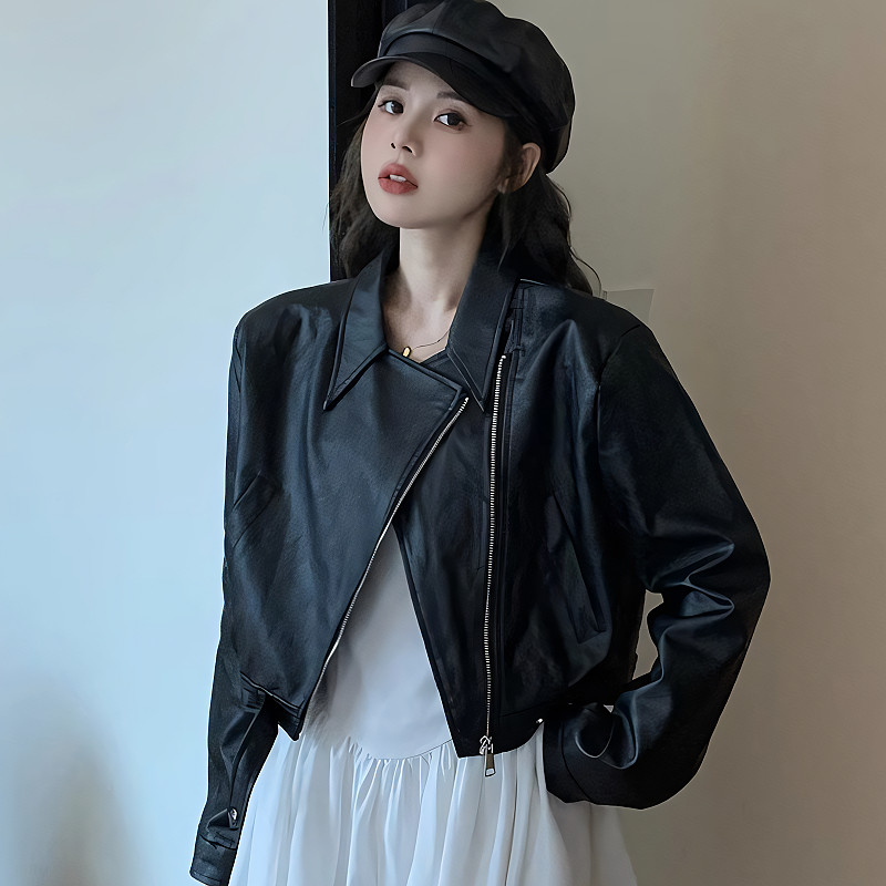 SuySuy พร้อมส่ง แจ็คเก็ต คอปก แขนยาว ผ้าหนัง เนื้อผ้าดี รุ่นซิปรูด สไตล์เท่ๆ เก๋ๆ ใส่ได้หลายแนวสไตล์