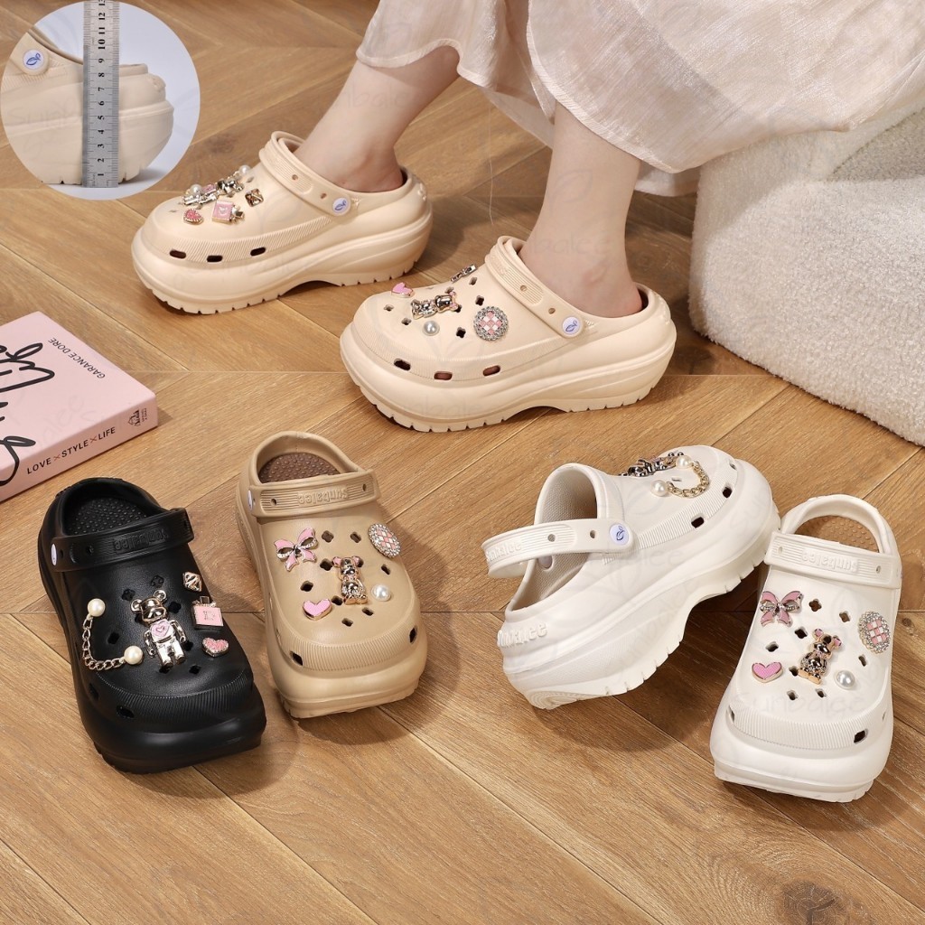 AJAYGNA รองเท้าหัวโต แถมตัวติด เสริมส้น 8 เซน รองเท้าผู้หญิงรัดส้น EVA สีพื้นล้วน SHO-SUN8694 รวมตัวติด2