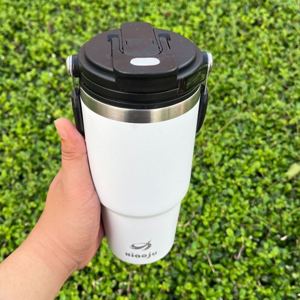 XIAOJU แก้วน้ำเก็บความเย็น ฝาหูหิ้วพร้อมเปิดดื่ม 2 ฝั่ง หลอดดูด / ยกดื่ม เก็บอุณหภูมิได้ทั้งร้อนและเย็น SUS304