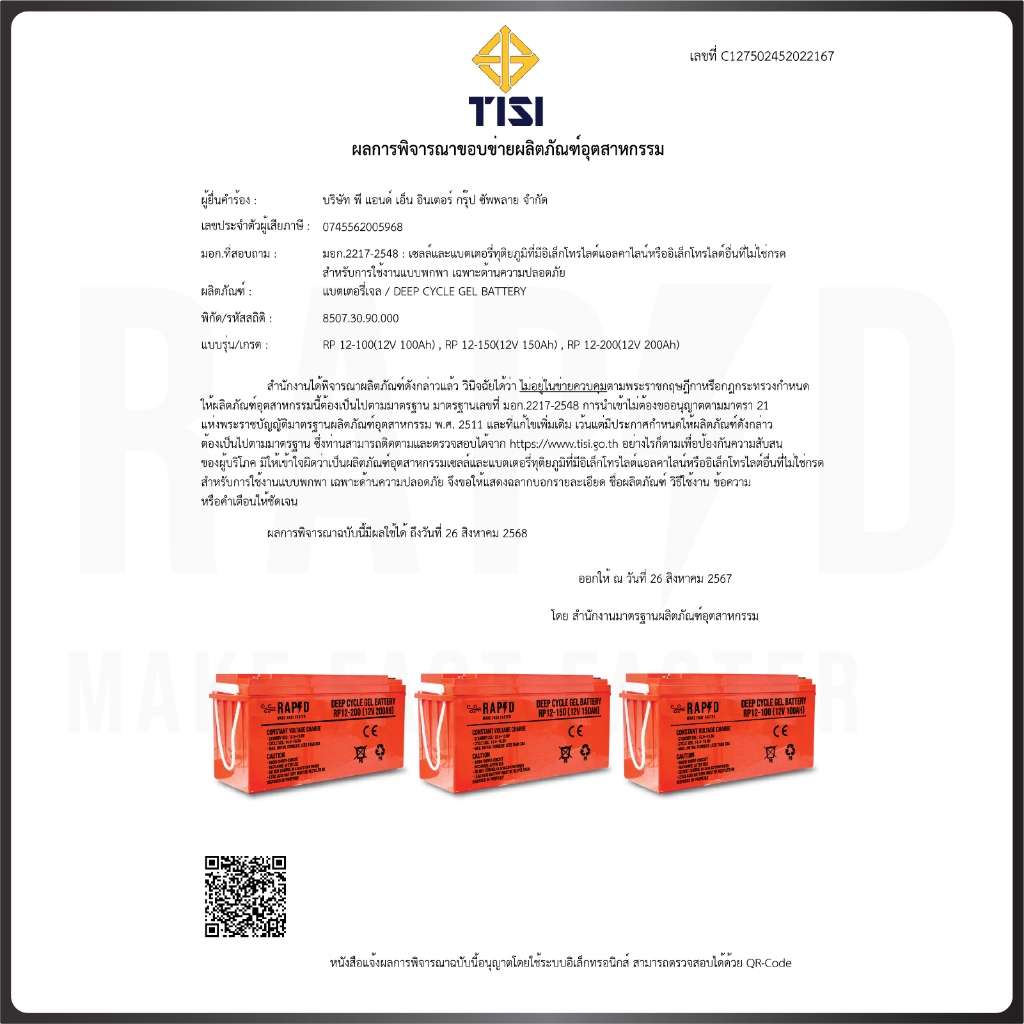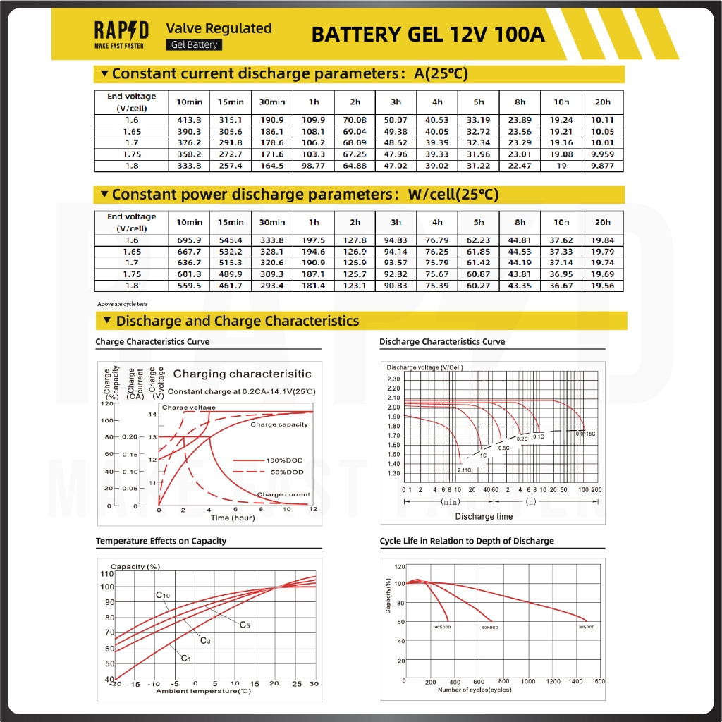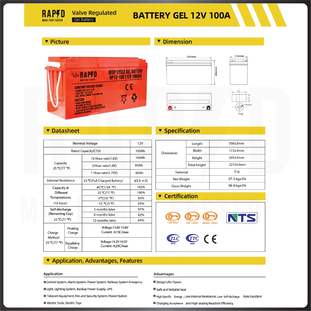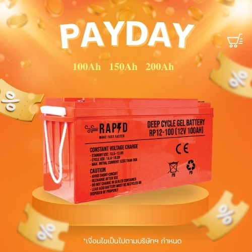 แบตเตอรี่เจล100Ah แบรนด์ RAPD ส่งฟรี