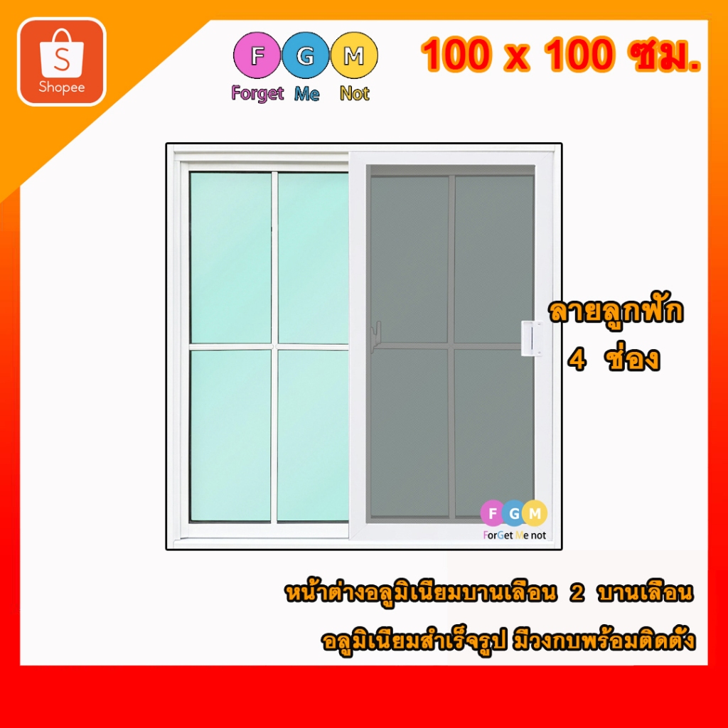 [สินค้ามี รับประกัน!!] ลายลูกฟัก 4ช่อง ลายตาราง ,หน้าต่างบานสำเร็จรูปขนาด100x100ซม.