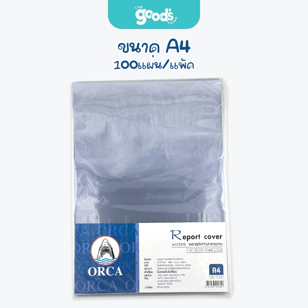 แผ่นใสทำปก 100แผ่น ออร์ก้า ปกรายงาน ขนาด A4 หนา 140 ไมครอน Orca NO.140