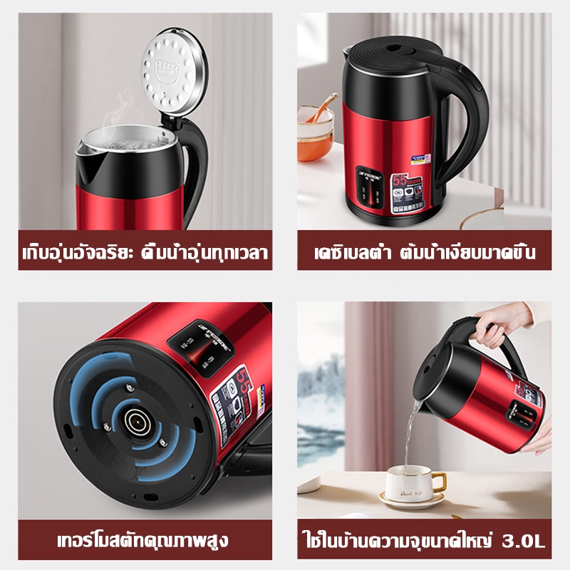 【รับประกัน 5 ปี】Supor กาน้ำร้อนไฟฟ้า 3200W ฟรีปลั๊กหรู เก็บความร้อนอัจฉริยะ วัสดุเกรดอาหาร กาน้ำ กาต้มน้ำ กาน้ำไฟฟ้า