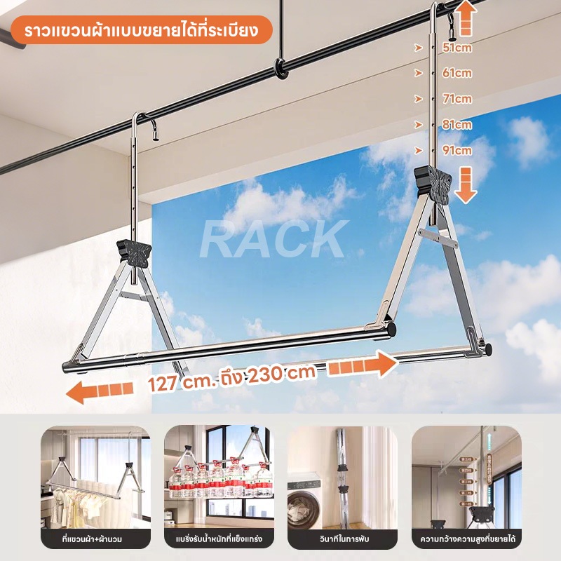 ราวตากผ้า ราวแขวนผ้าเช็ดตัว ราวแขวนผ้ายืดได้ ปรับยืดความยาวได้ ไม่ต้องเจาะผนัง ราวแขวนผ้า ราวผ้าม่าน80-240cm