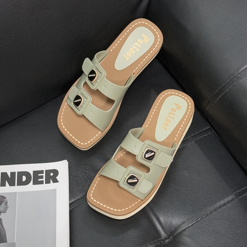 รองเท้าแตะผู้หญิงสไตล์วินเทจ by Falisar✨สวมเข็มขัด2ตอน+พื้นสูง4.5ซม. ใส่เดินทั้งวันไม่เมื่อย #1507-B
