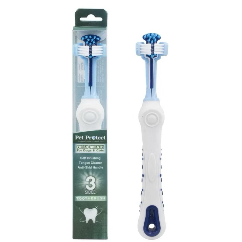 Pet Protect Pet Toothbrush แปรงสีฟันสัตว์เลี้ยง 3 ด้าน พร้อมที่แปรงลิ้น ขนาด 17x2.3ซม. สำหรับสุนัขและแมว