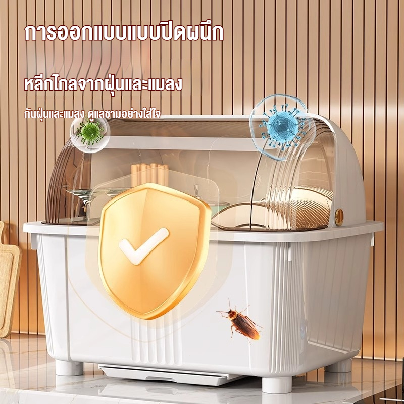 ที่คว่ำจาน ที่คว่ำจานทรงโค้งมน (มีฝาปิด) กันฝุ่นละออง กันแมลง พลาสติก กล่องเก็บจาน ที่คว่ำจานมีฝาปิด