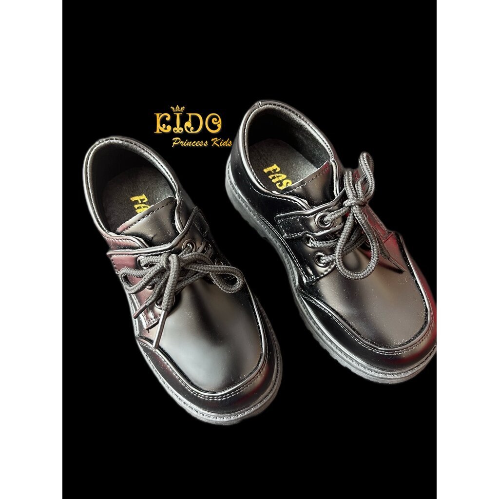 Tรองเท้าเด็กผู้ชาย(หน้าร้านอยู่รัชดา ลองได้)HM155 สีดำ หนังแก้ว ร้อยเชือก