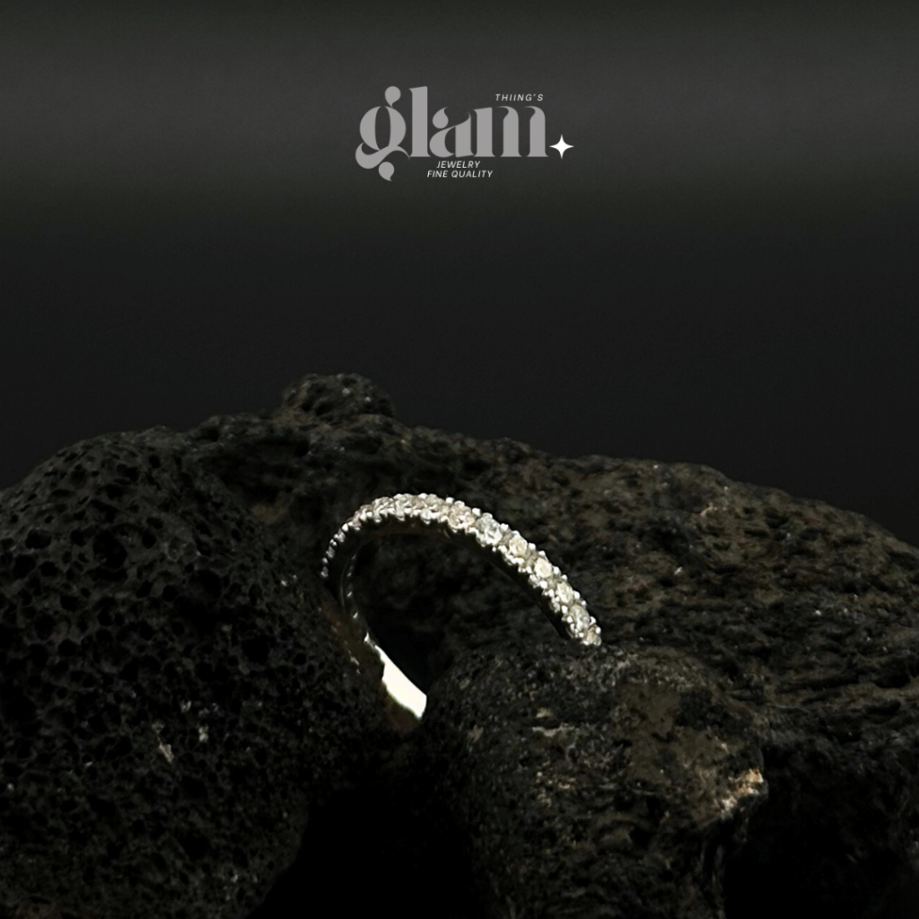 S1-12 *ส่งจากไทยภายใน 3 วัน* แหวนแถวครึ่งนิ้ว เงินแท้ 925 ชุบทองคำขาว เพชร Moissanite (โมอีส)