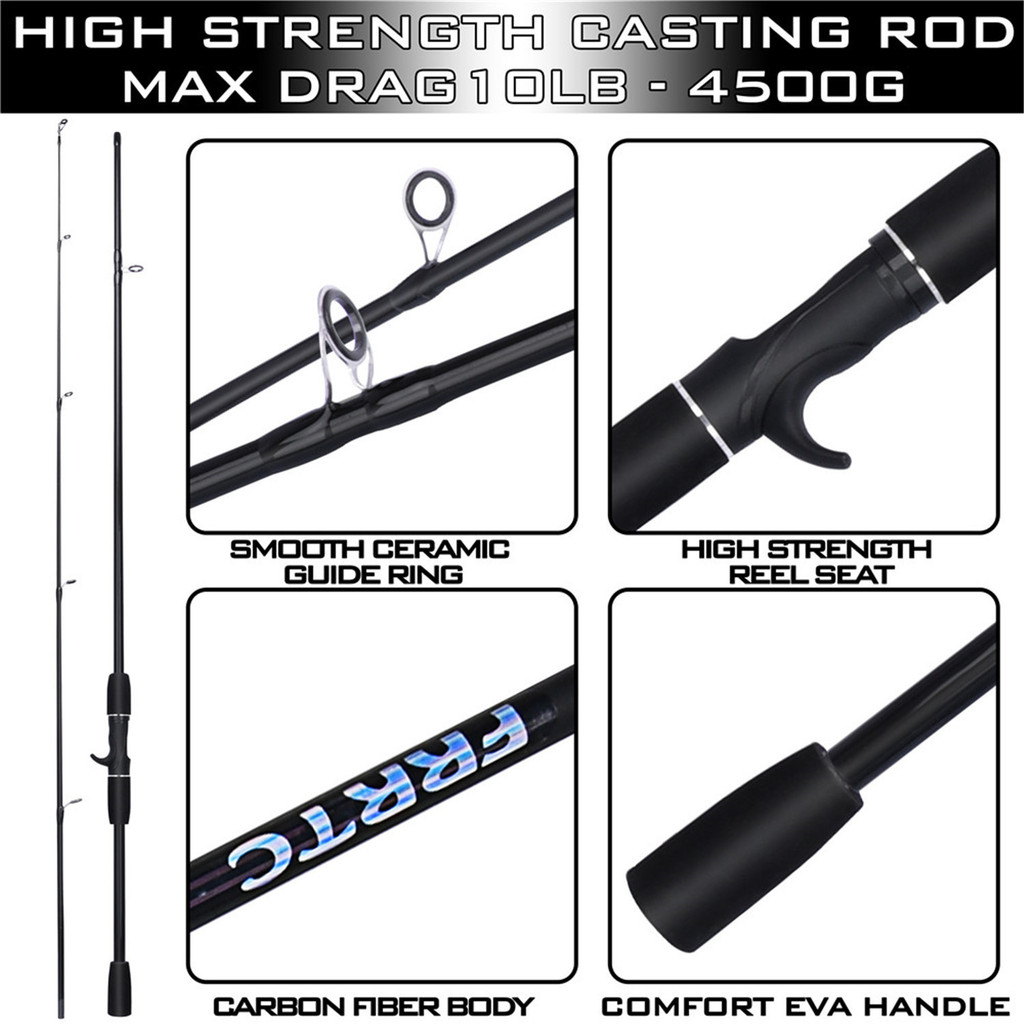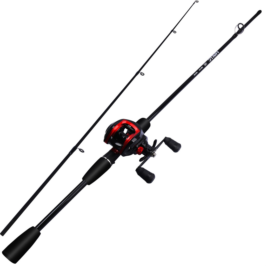 FRRTC ชุดอุปกรณ์ตกปลาแบบเหวี่ยง คันเบ็ด 2 ส่วน และ ชุดรอกเบทคาสติ้งสีแดง พร้อมเหยื่อล่อสายตกปลา