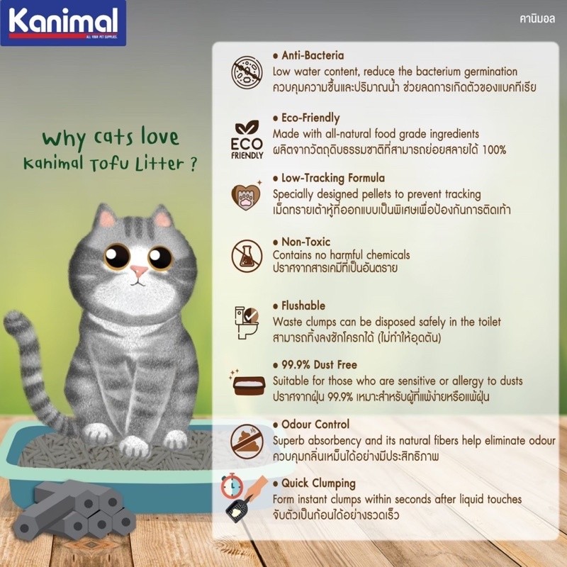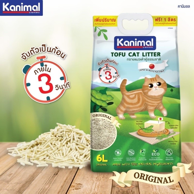 {FS} Kanimal คานิมอล ทรายแมวเต้าหู้ธรรมชาติ 100% ขนาด 20 ลิตร ทิ้งชักโครกได้ ฝุ่นน้อย