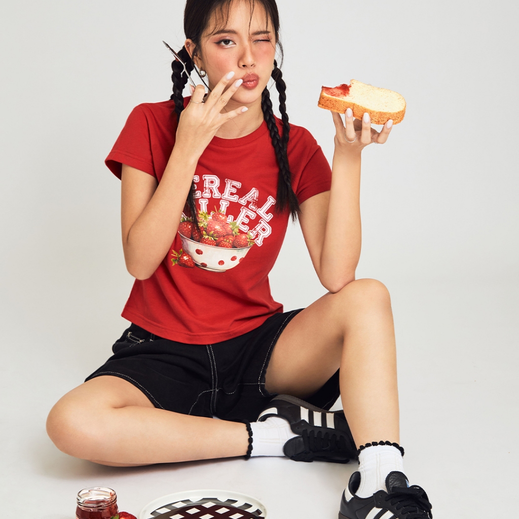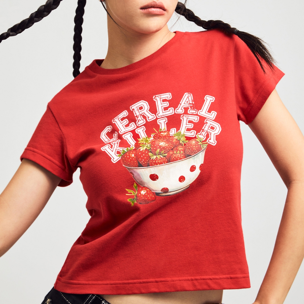 [CEREAL KILLER] เสื้อยืด Baby Tee สีแดง ลาย Strawberry (CK004)