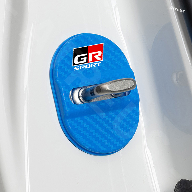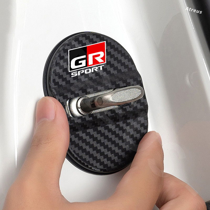 1/4ชิ้น Toyota GR รถล็อคประตูหัวเข็มขัดปก คาร์บอนไฟเบอร์ ล็อคประตูรถยนต์ ฝาปิด ที่ล็อคประตูรถ ฝาครอบป้องกัน สำหรับ Toyota Prius Fortuner Corolla Cross CHR Camry Wish Vios Veloz Estima Sienta Yaris Ativ Altis Hilux Revo bZ4X Hiace