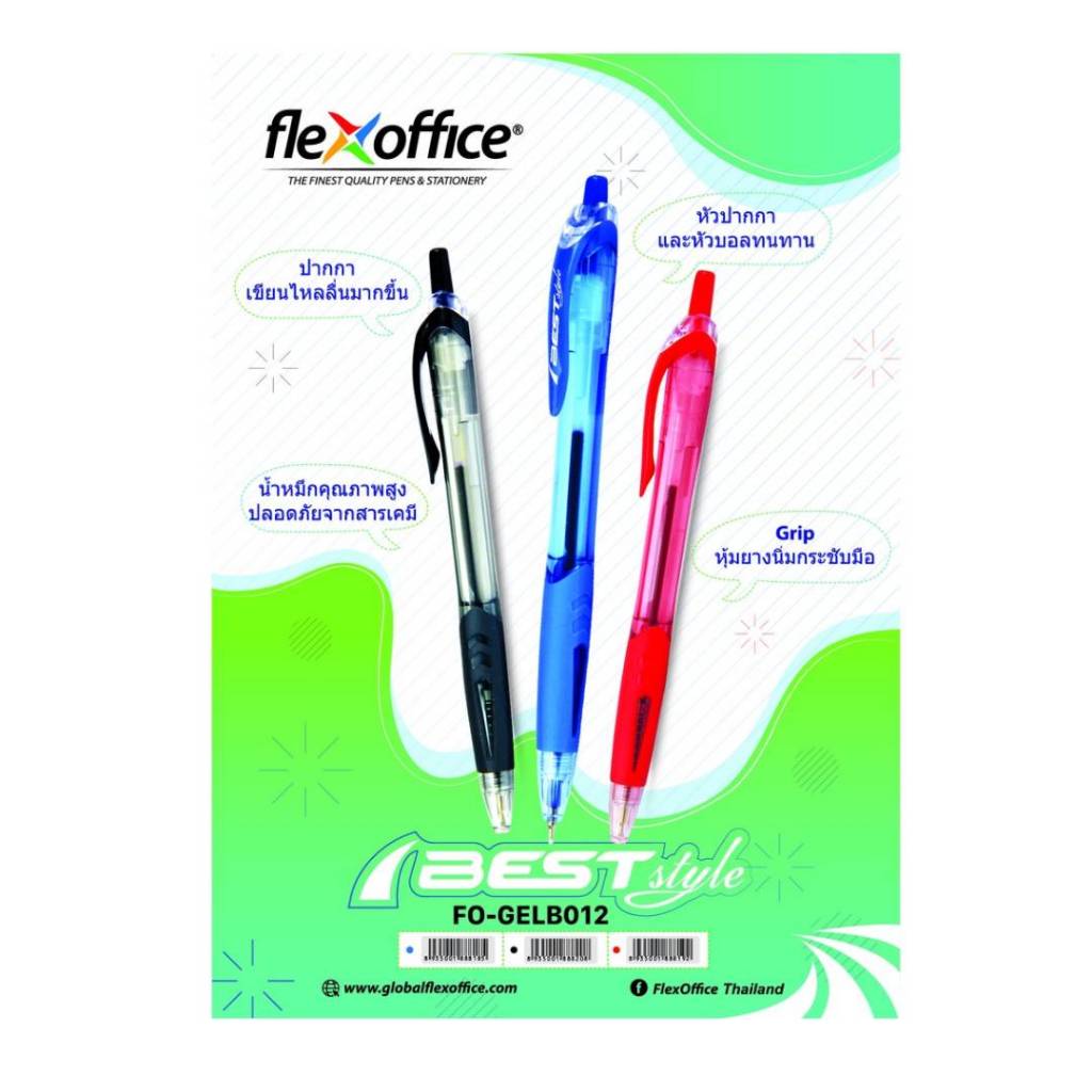 FlexOffice FO-GELB012 ปากกาลูกลื่น 0.7mm - สีน้ำเงิน/สีดำ/สีแดง แยกแท่ง 1 แท่ง ปากกาเขียนลื่นพิเศษ