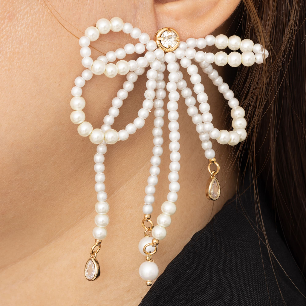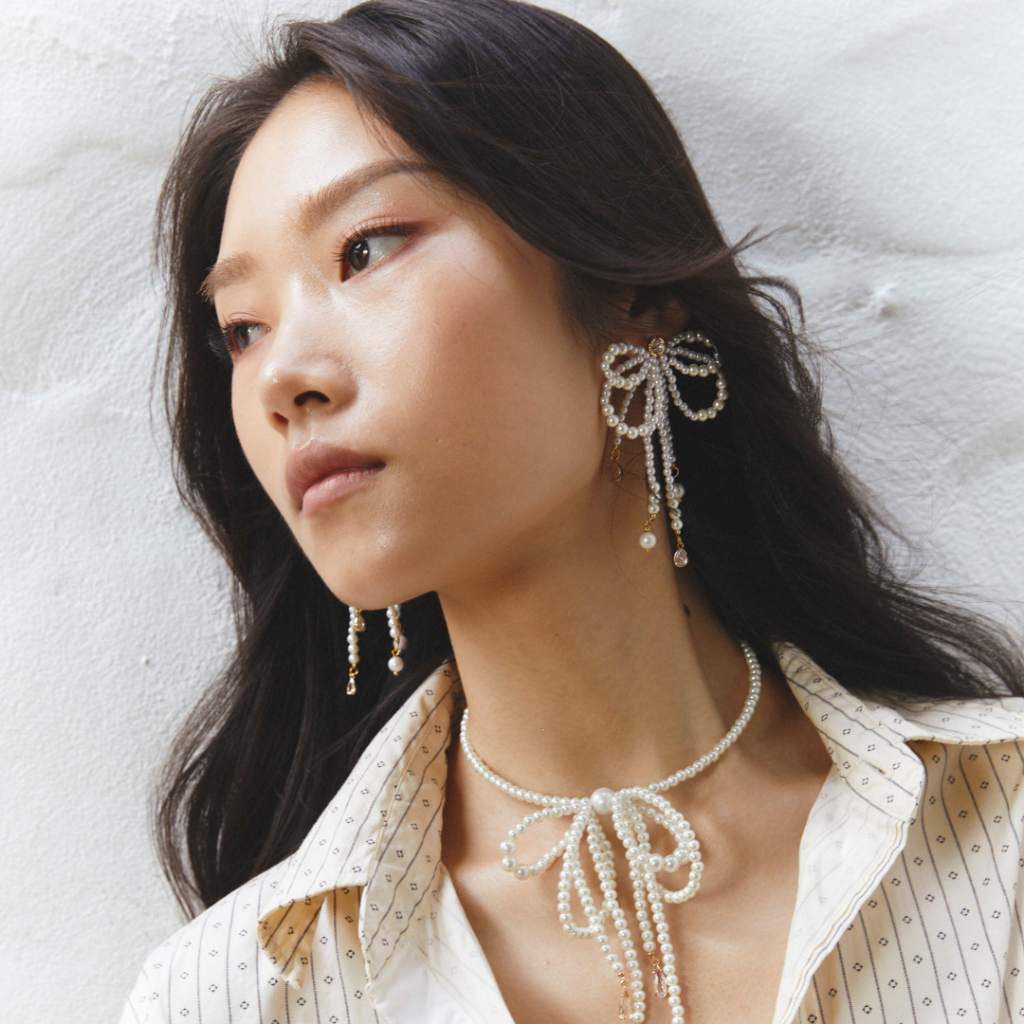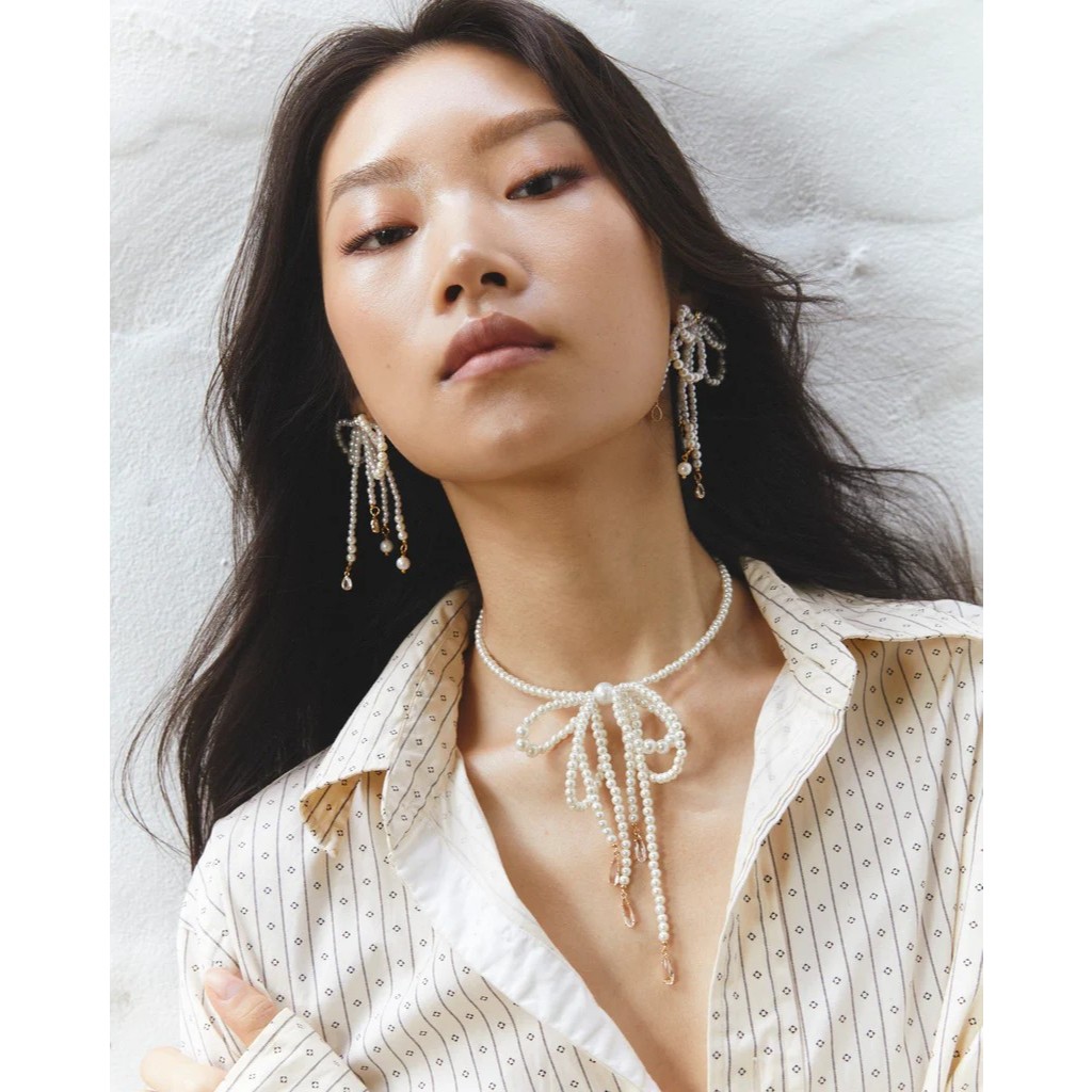 NAKAMOL - FRESH WATER WHITE PEARL BOW EARRINGS ต่างหูมุกทรงโบว์