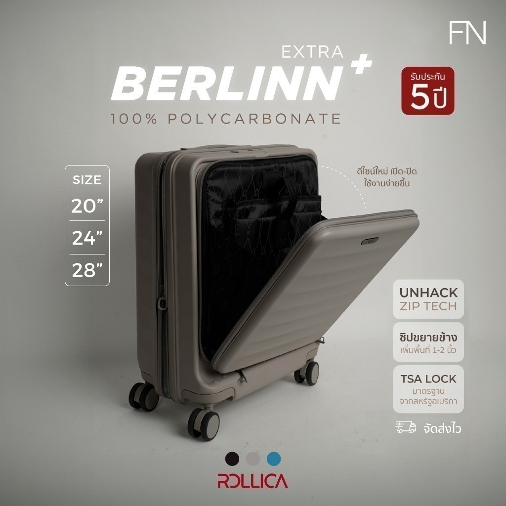 FN ROLLICA กระเป๋าเดินทางเปิดฝาหน้า พร้อมซิบขยายข้าง รุ่นBERLINN EXTRA PLUS ซิป2ชั้น ระบบล็อครหัสTSA