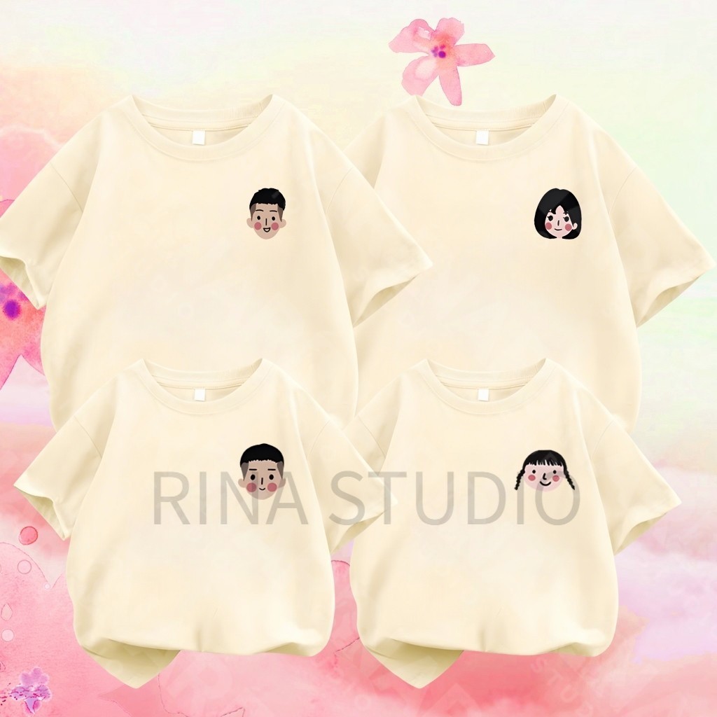 🔥พร้อมส่ง&COD🔥RINA STUDIO เสื้อยืดแขนสั้นแบบร่วมสไตล์สำหรับพ่อแม้และเด็ก ปี 2025, สบายและนุ่ม, ผ้าฝ้ายแท้ 100%