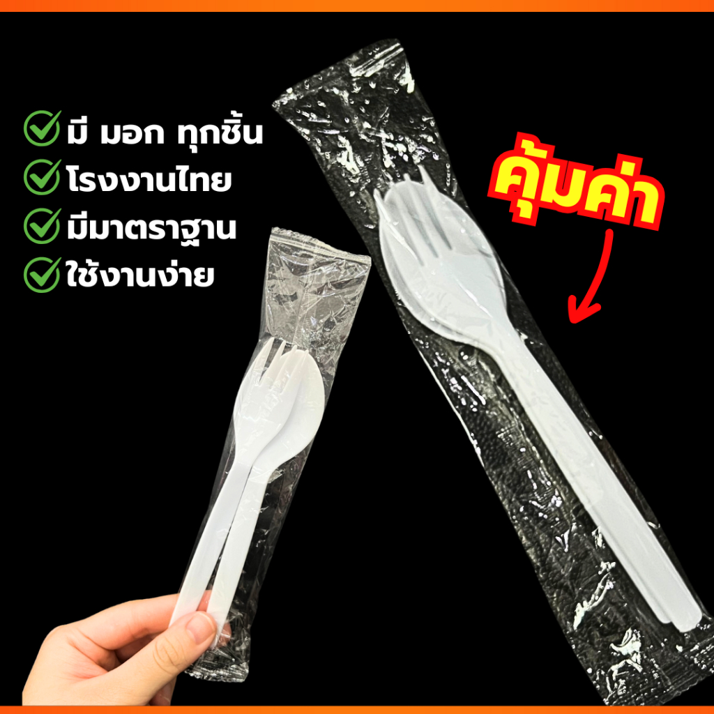 ช้อนส้อมพลาสติก🖐แพ็คคู่ ราคาคุ้มค่ามาก ผลิตจากโรงงานไทย ได้มาตราฐาน มีมอก ช้อนส้อมใช้แล้วทิ้ง
