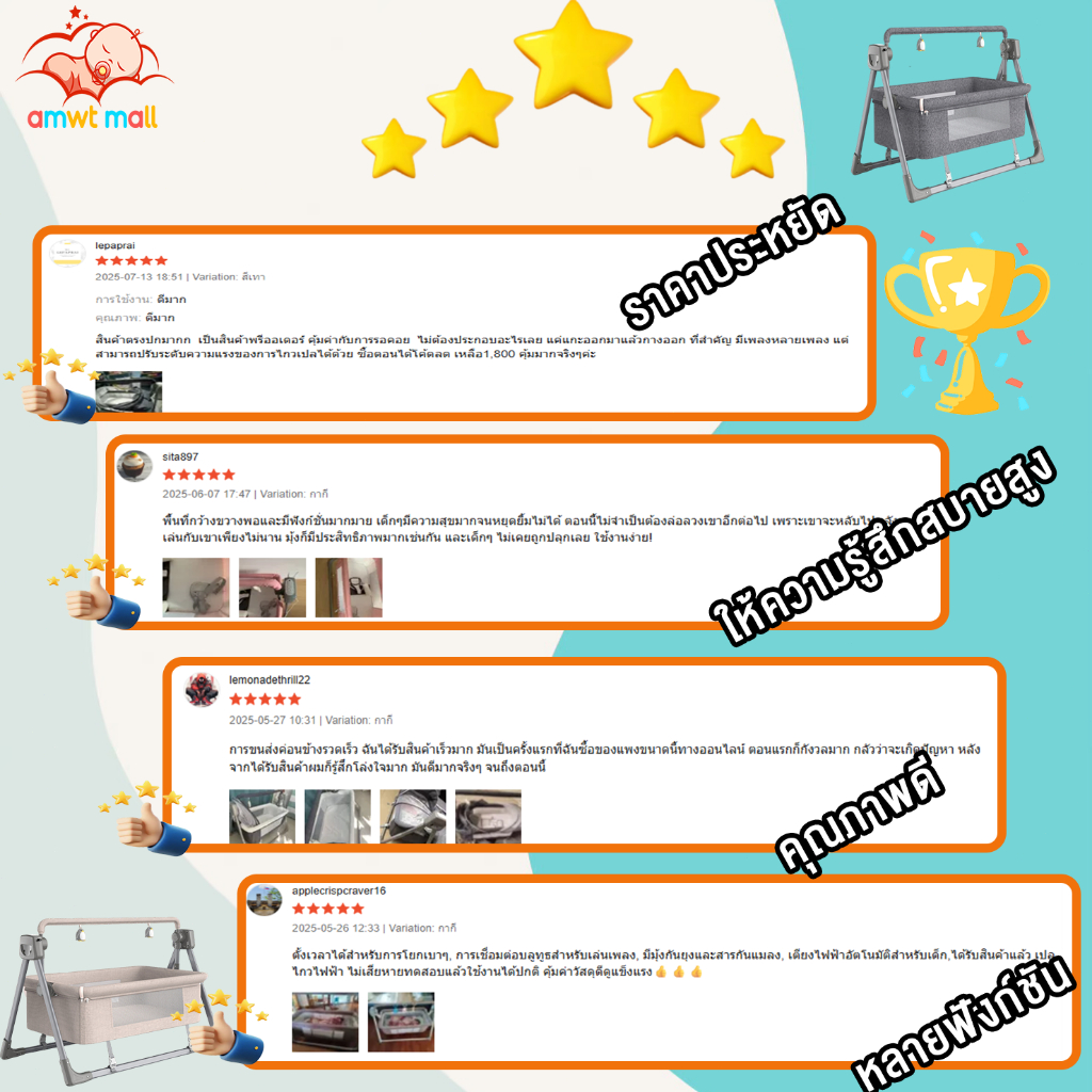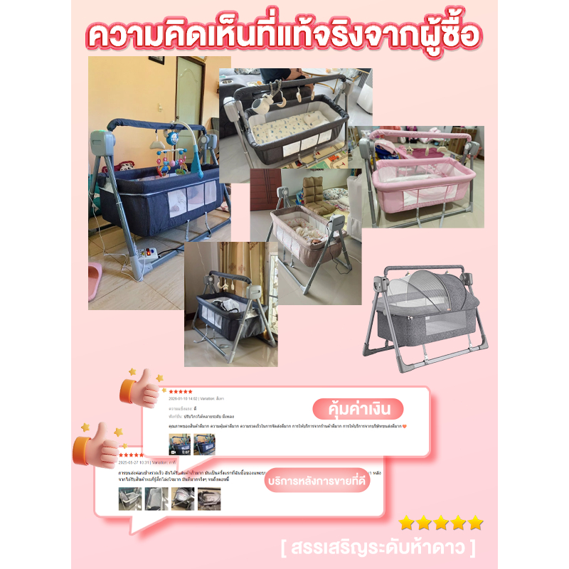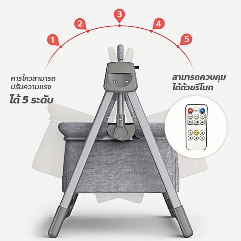 AMWT MALL⚡️ เปลไกวไฟฟ้า มีรีโมท พับเก็บได้ ใช้ได้อายุ 0-3 ขวบ ปรับได้5ระดับ พร้อมมุ้งกันยุง