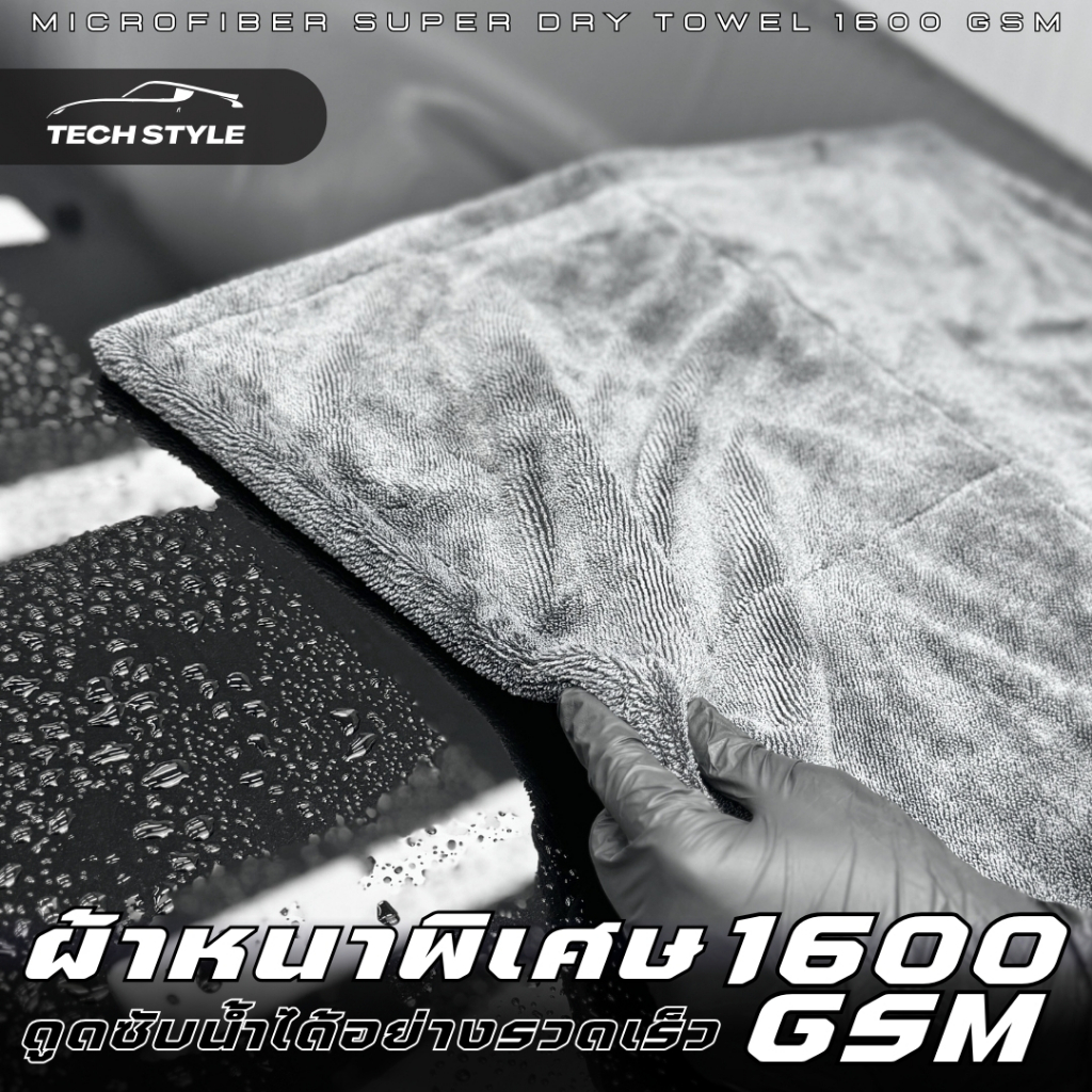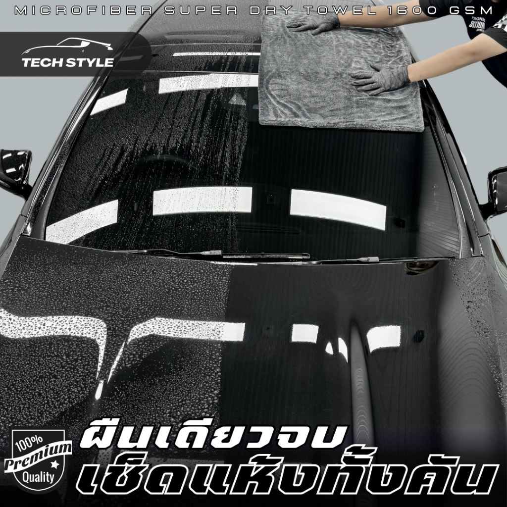 ผ้าเช็ดรถ 1600 GSM Super Dry Double Sided เกรด Hi-End ผ้าซับน้ำ ผ้าไร้ขอบไม่ทำลายสีรถ เช็ดแห้งสนิท