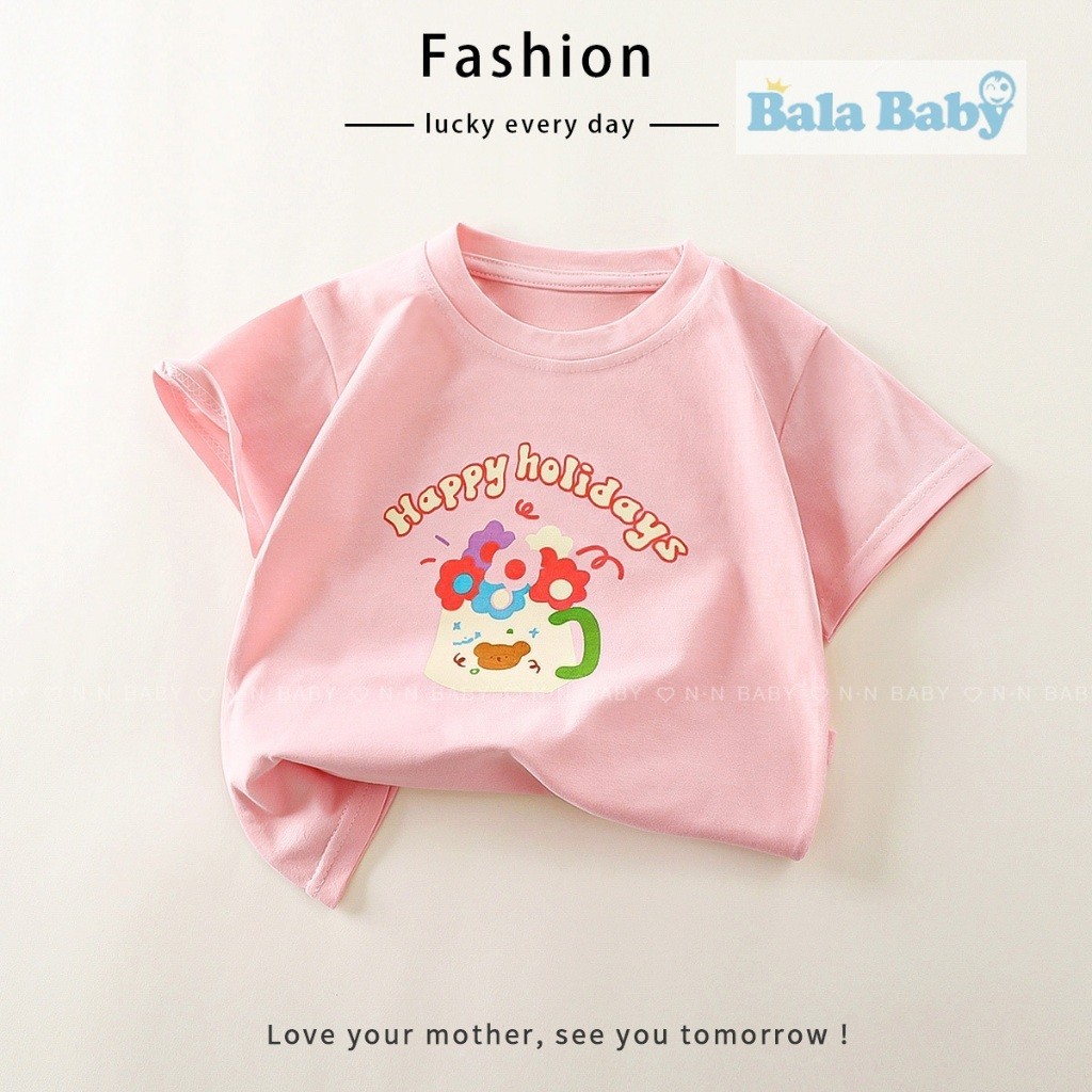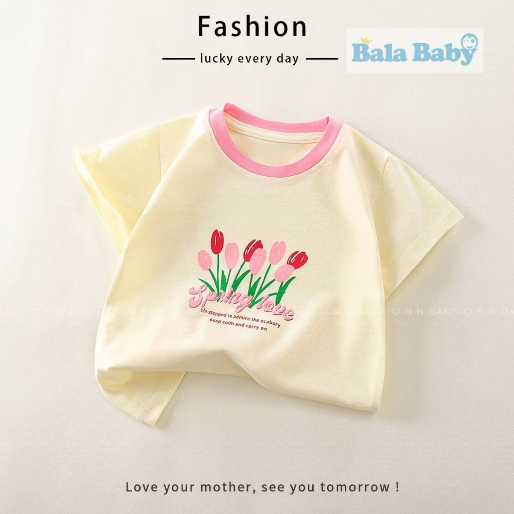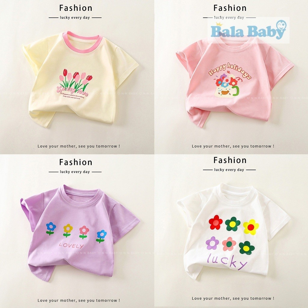 เสื้อยืดเด็ก แขนสั้น เสื้อยืดมินมอลเด็กผู้หญิง ลายดอกไม้สวยๆ Size90-120 cm DXT52