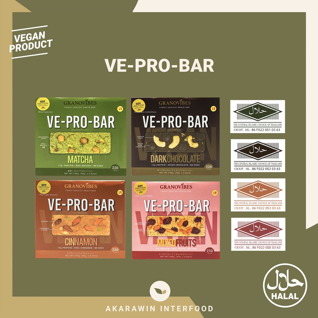 [เจ💛] VE-PRO-BAR โปรตีนบาร์จากถั่วเหลือง รสดาร์คช็อคโกแลต 1 กล่อง บรรจุ 6 บาร์