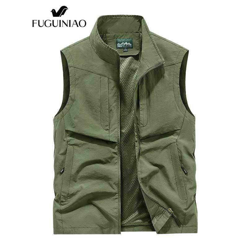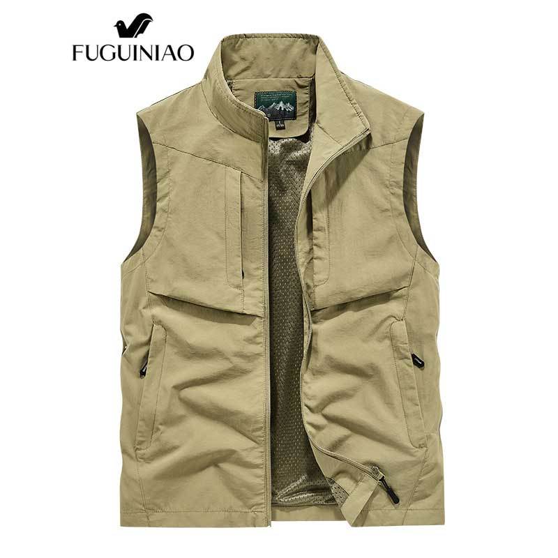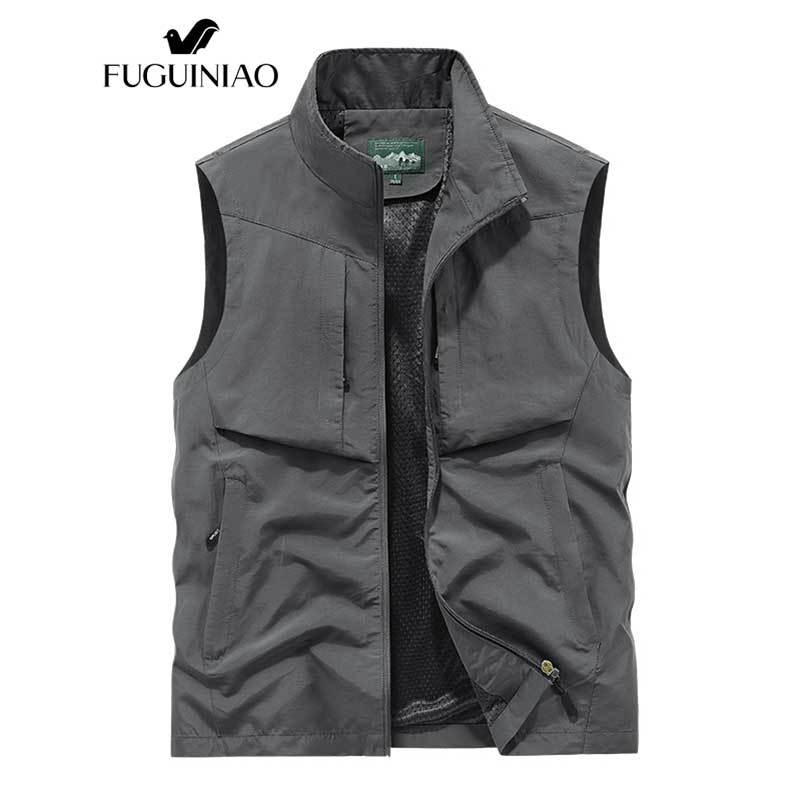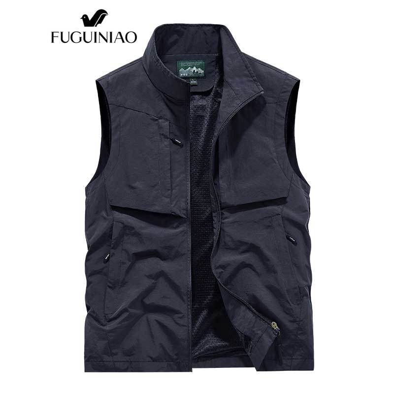 ฟูเกียว เสื้อกั๊กผู้ชายกลางแจ้งสบายๆฤดูใบไม้ผลิและฤดูใบไม้ร่วงบางวัยกลางคนสีทึบ ชุดทํางาน แจ็คเก็ต