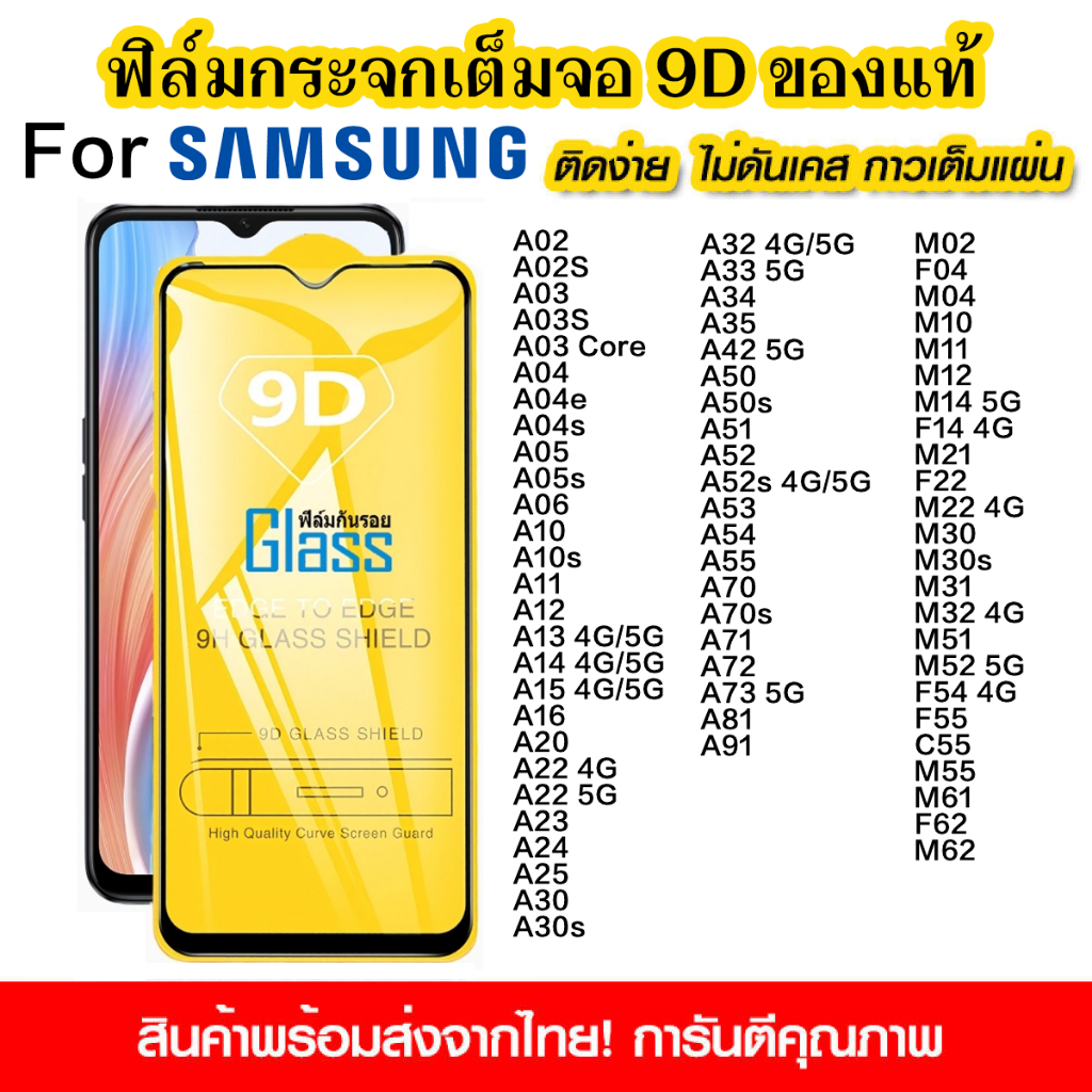 ฟิล์มกระจกนิรภัย For Samsung Galaxy A05 A36 A04 A03 A15 A24 A25 A70 A50 A06 A16 A71 A72 A02 แบบเต็มจอ 9D กาวเต็มแผ่น