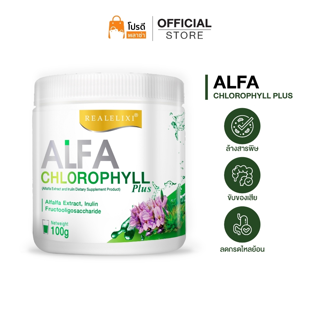 Alfa Chlorophyll Plus 4 กระปุก คลอโรฟิลล์ 1 กล่องและกระบอกน้ำ 1 กระบอก