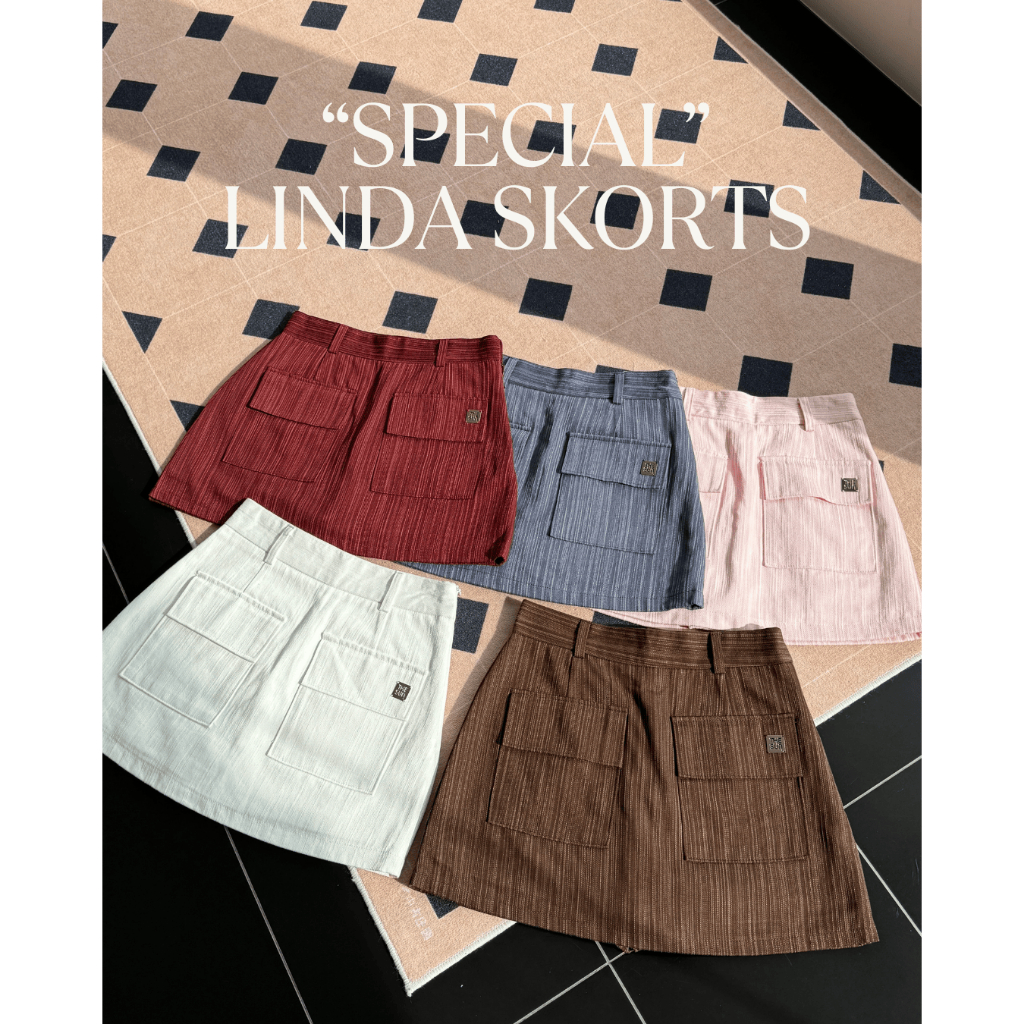 THESUNCO- SPECIAL LINDA skorts “ลินดา” กระโปรงกางเกงเนื้อผ้ายีนส์พรีเมียมนุ่มมีลายทอ กระโปรงหน้าหลัง