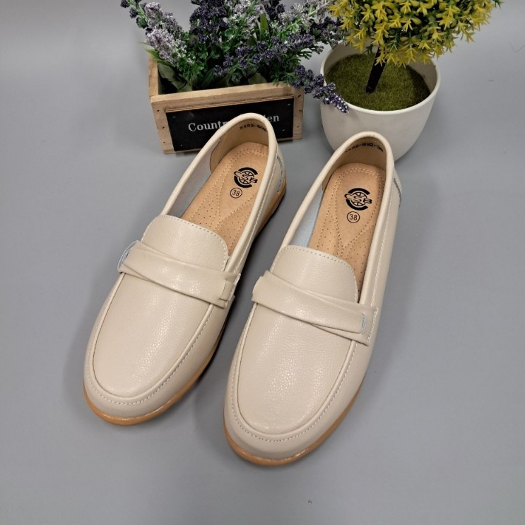 XX92-692 รองเท้าหนังหุ้มส้นผู้หญิงไซส์36-41มีหลายสีส้นเตี้ย+1ไซส์ ส้นแบน (1 นิ้ว หรือน้อยกว่า)