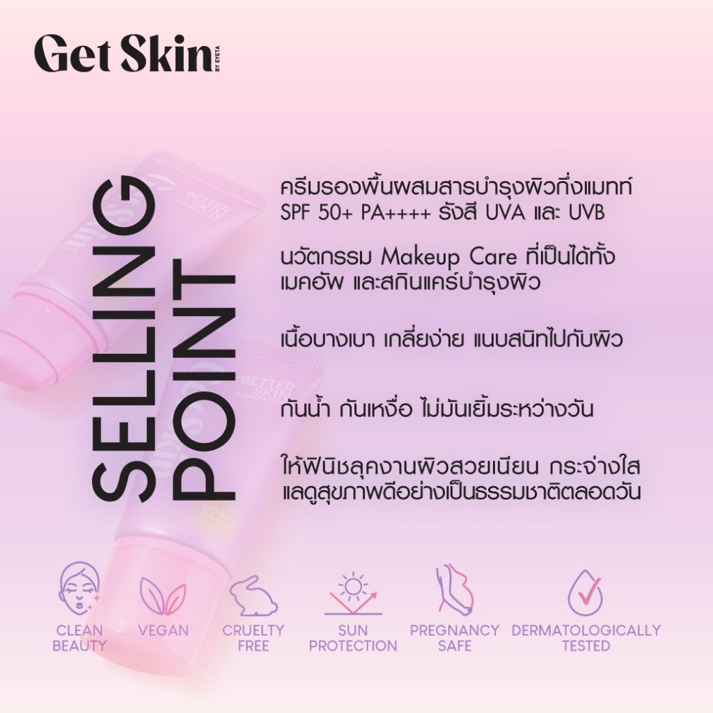 Get Skin เบทเทอร์สกินฟาวเดชั่น เอสพีเอฟ50+ พีเอ++++ 30ml เก็ทสกินบายอายตา ครีมบำรุงผิวผสมรองพื้น เนื้อกึ่งแมทท์ ผสานกันแ
