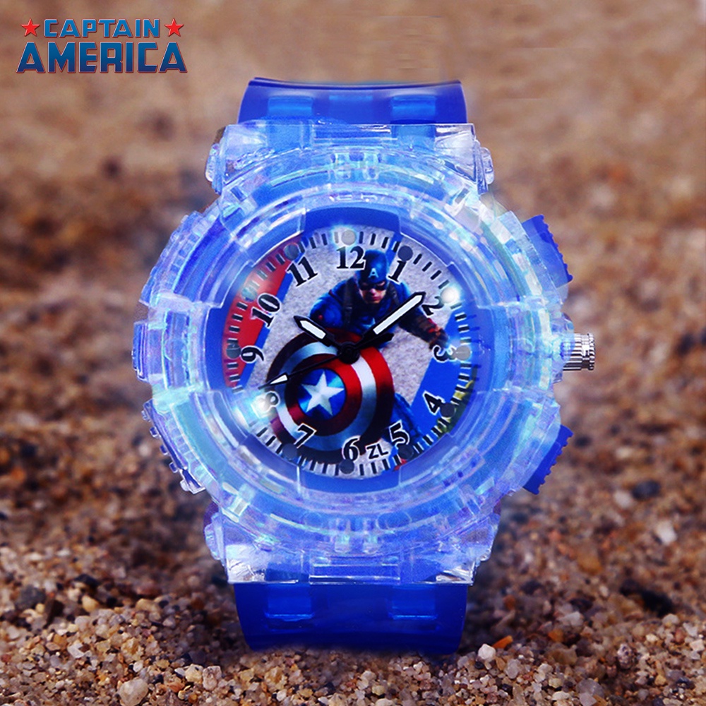 Marvel Spider-Man กัปตันอเมริกานาฬิกาเด็กพร้อมแสงแฟลชที่มีสีสันการ์ตูนเด็กนาฬิกาสําหรับชายหญิงนักเรียน Unisex