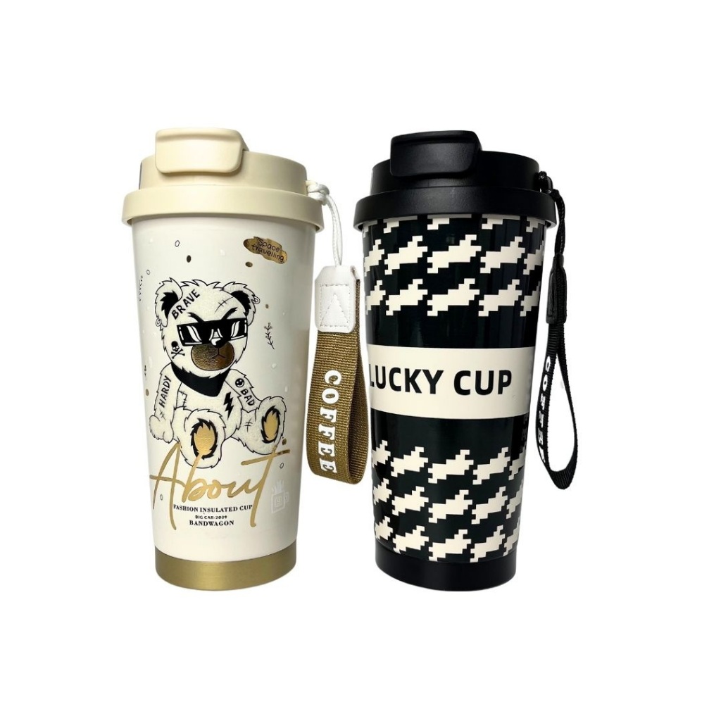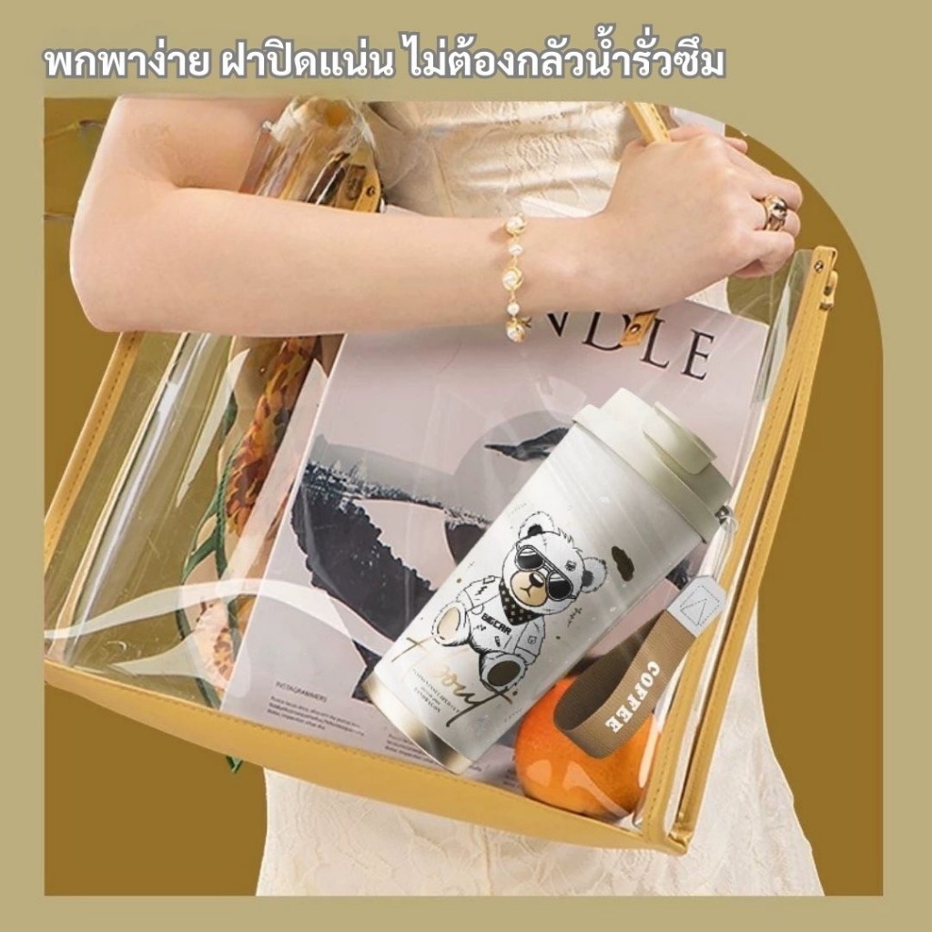 XIAOJU แก้วกาแฟลายหมี แก้วเสี่ยวจูเคลือบเซรามิก ขนาด 520ml เก็บ ร้อน & เย็น ได้ กรองชาได้ สแตนเลส316