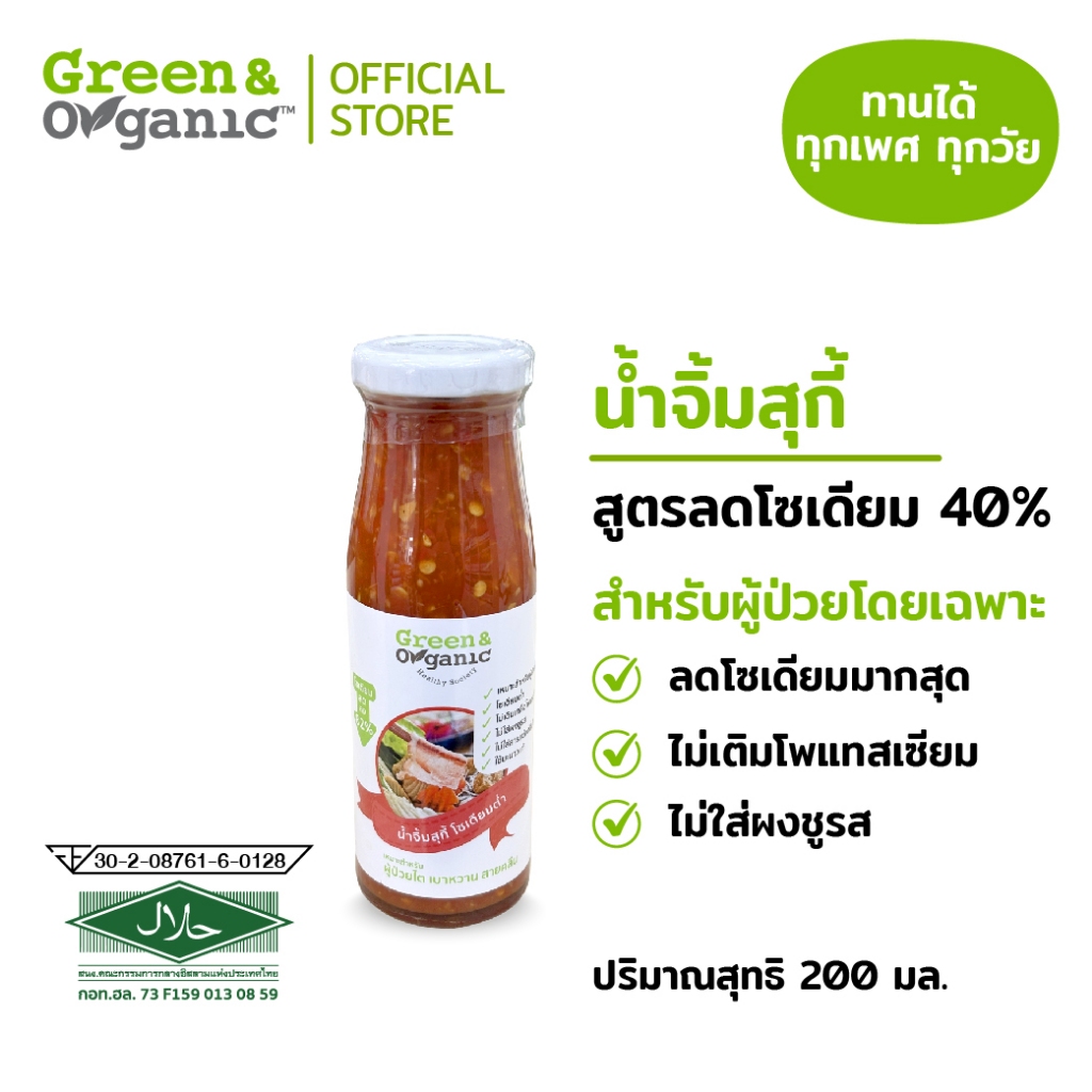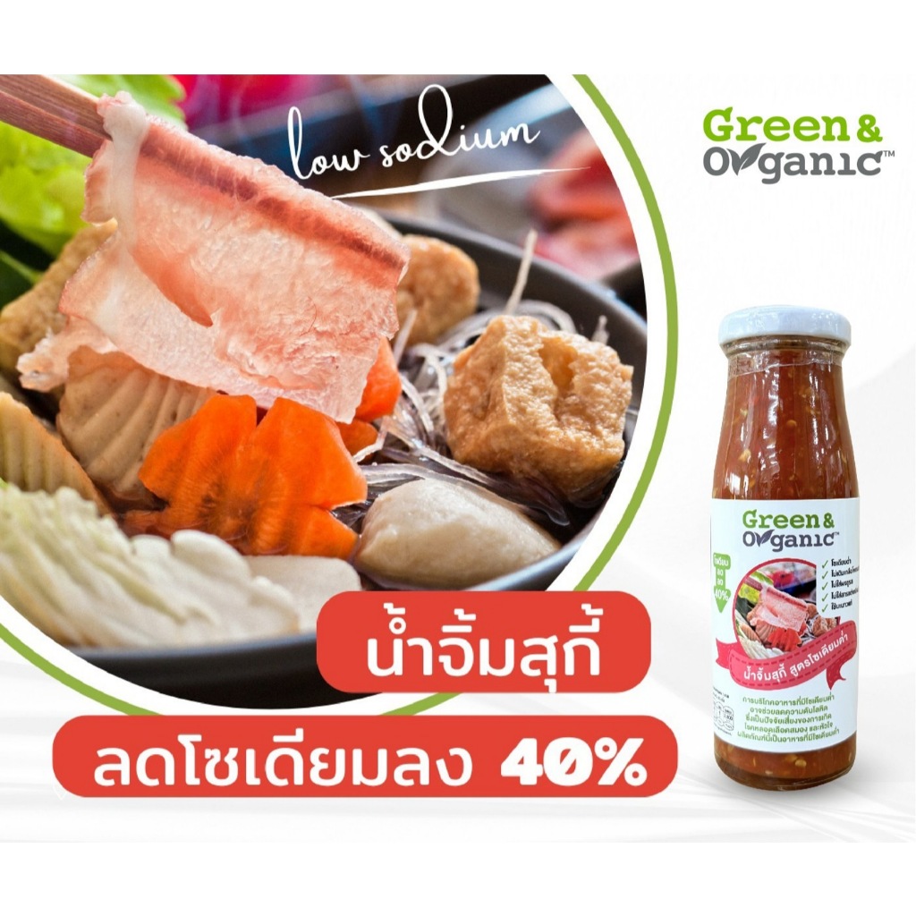 Green&Organic น้ำจิ้มสุกี้ โซเดียมต่ำ สูตรลดโซเดียม40% ผู้ป่วยไตทานได้ น้ำจิ้มคีโต Low Sodium 200มล.